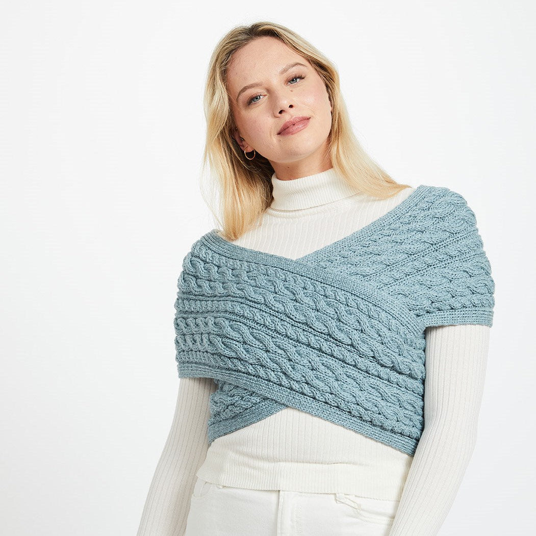 Intricate Aran Stitching: The wrap features classic Aran cable and diamond stitching, adding texture and depth to the design while paying homage to Ireland's rich knitting heritage.