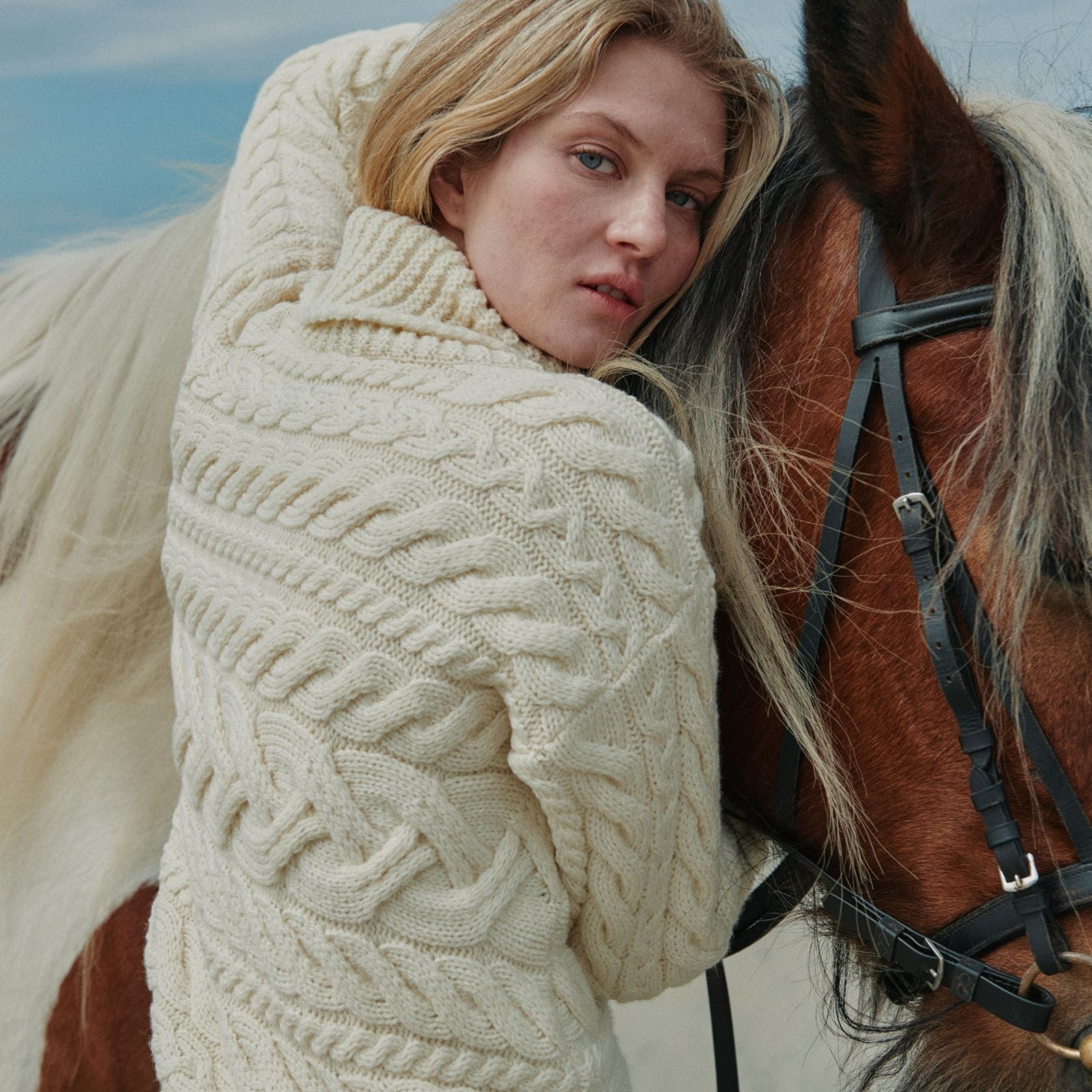Derreen Natural Aran Horizontal Cable Sweater