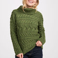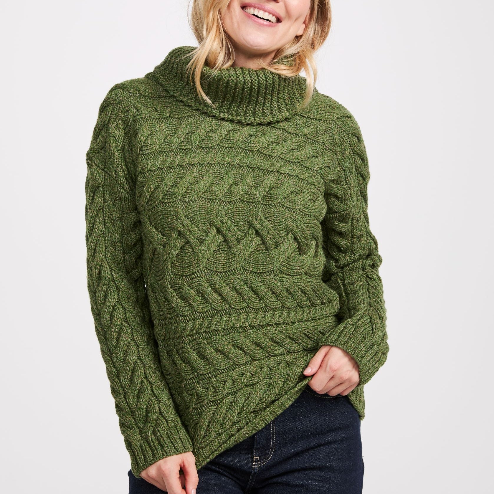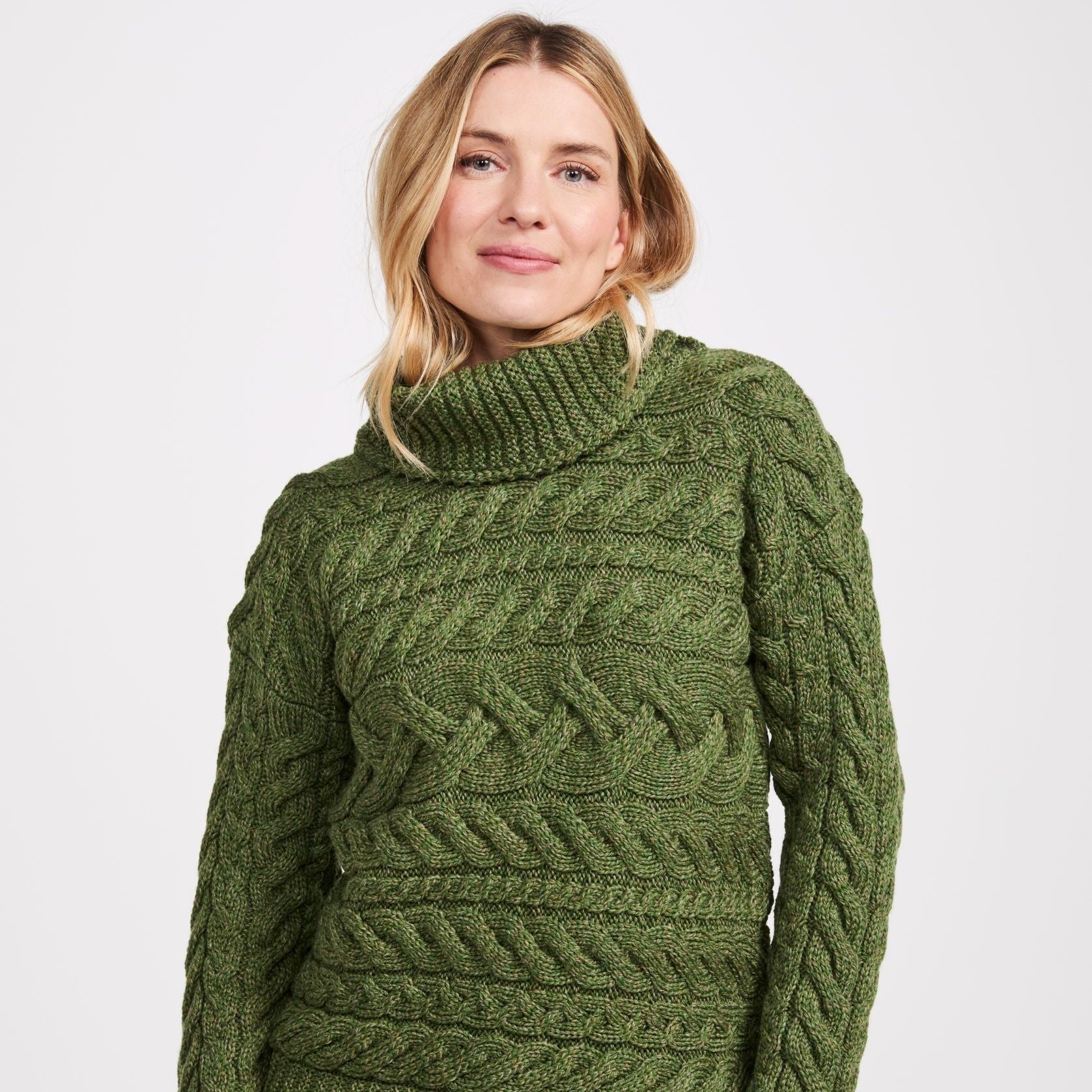 This standout piece is crafted with our very own Supersoft Merino wool, allowing you the chance to own an authentic Aran sweater with the added comfort of a gentle wool on your skin. With a cosy, chunky cowl neck and bold horizontal stitching, the Derreen makes a statement while still maintaining the rich tradition of Aran knitting. You’ll find large basket and cable stitching on this beautiful knit, said to bring safety, good luck and abundance to the wearer.
