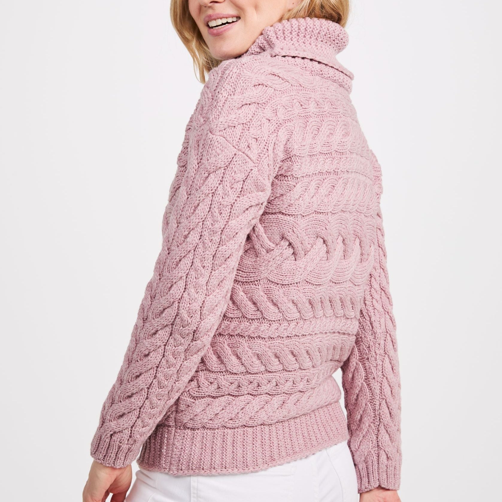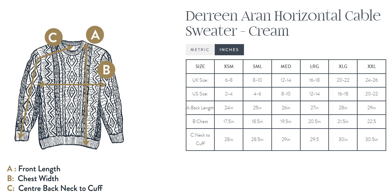 This standout piece is crafted with our very own Supersoft Merino wool, allowing you the chance to own an authentic Aran sweater with the added comfort of a gentle wool on your skin. With a cosy, chunky cowl neck and bold horizontal stitching, the Derreen makes a statement while still maintaining the rich tradition of Aran knitting. You’ll find large basket and cable stitching on this beautiful knit, said to bring safety, good luck and abundance to the wearer.