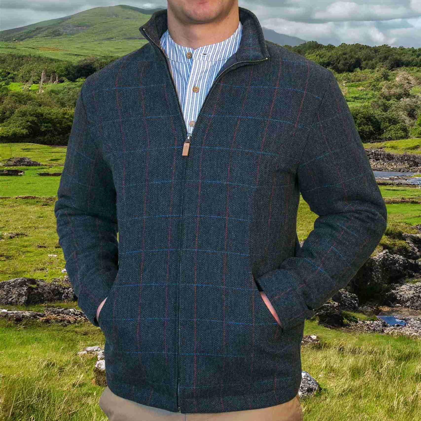 Handmade in Ireland, the Donegal features the traditional overcheck pattern in Blue, which gives the jacket a traditional and distinctive appearance.