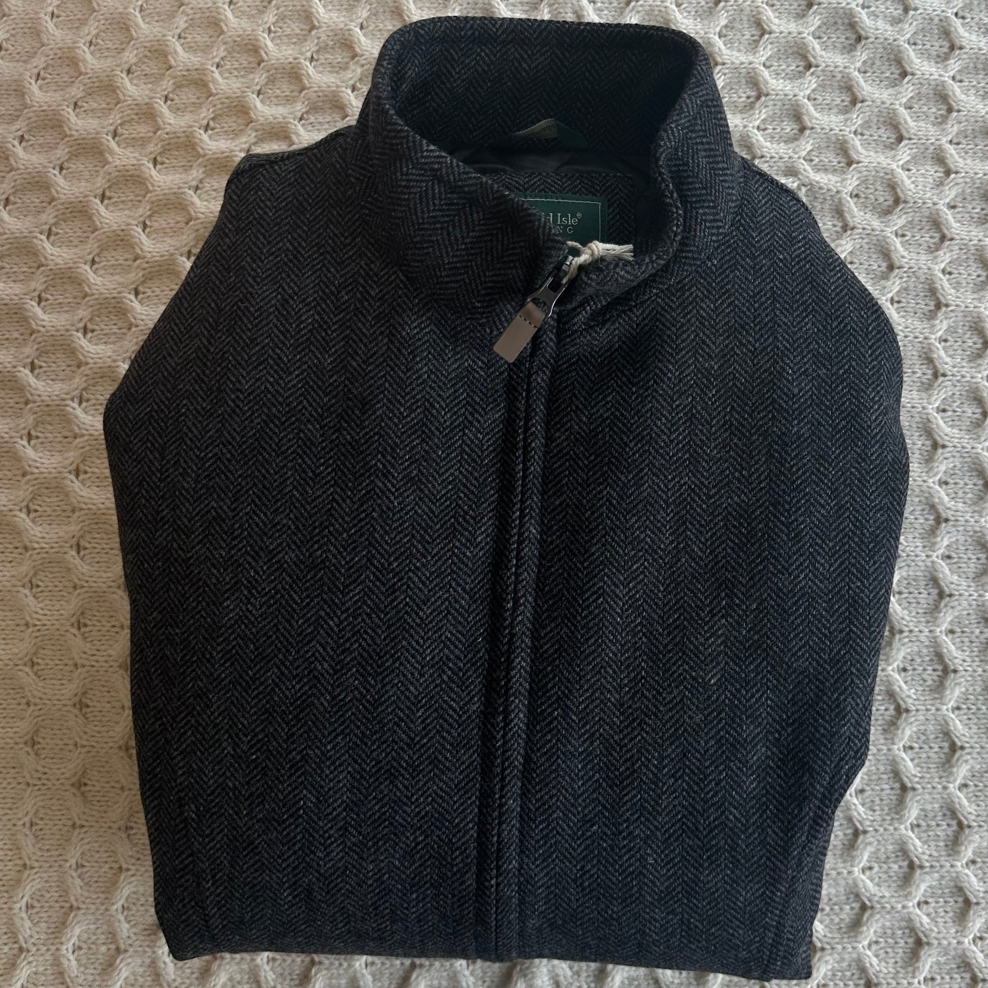 Handmade in Ireland, it features the traditional herringbone pattern in Blue, which gives the jacket a traditional and distinctive appearance.