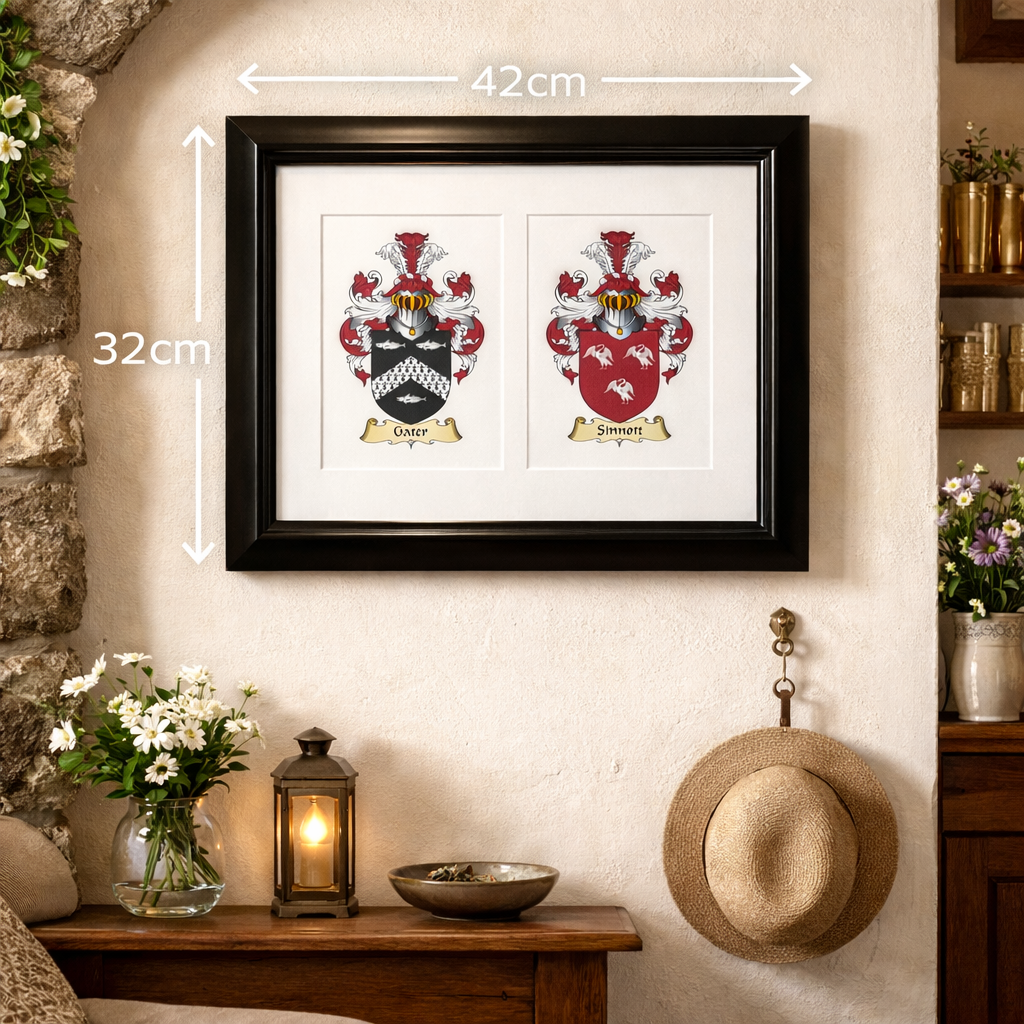 Double Family Crest Parchment – a tribute to your ancestry. Perfect for your family home.