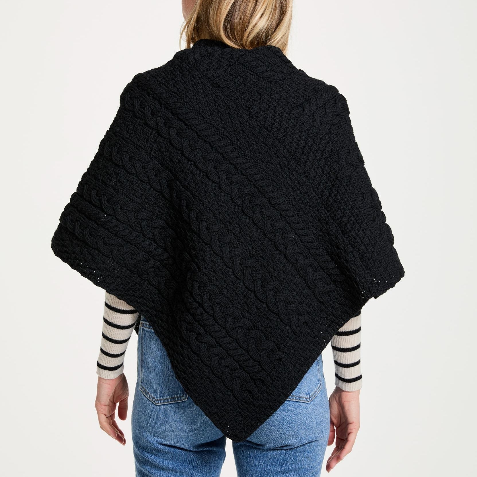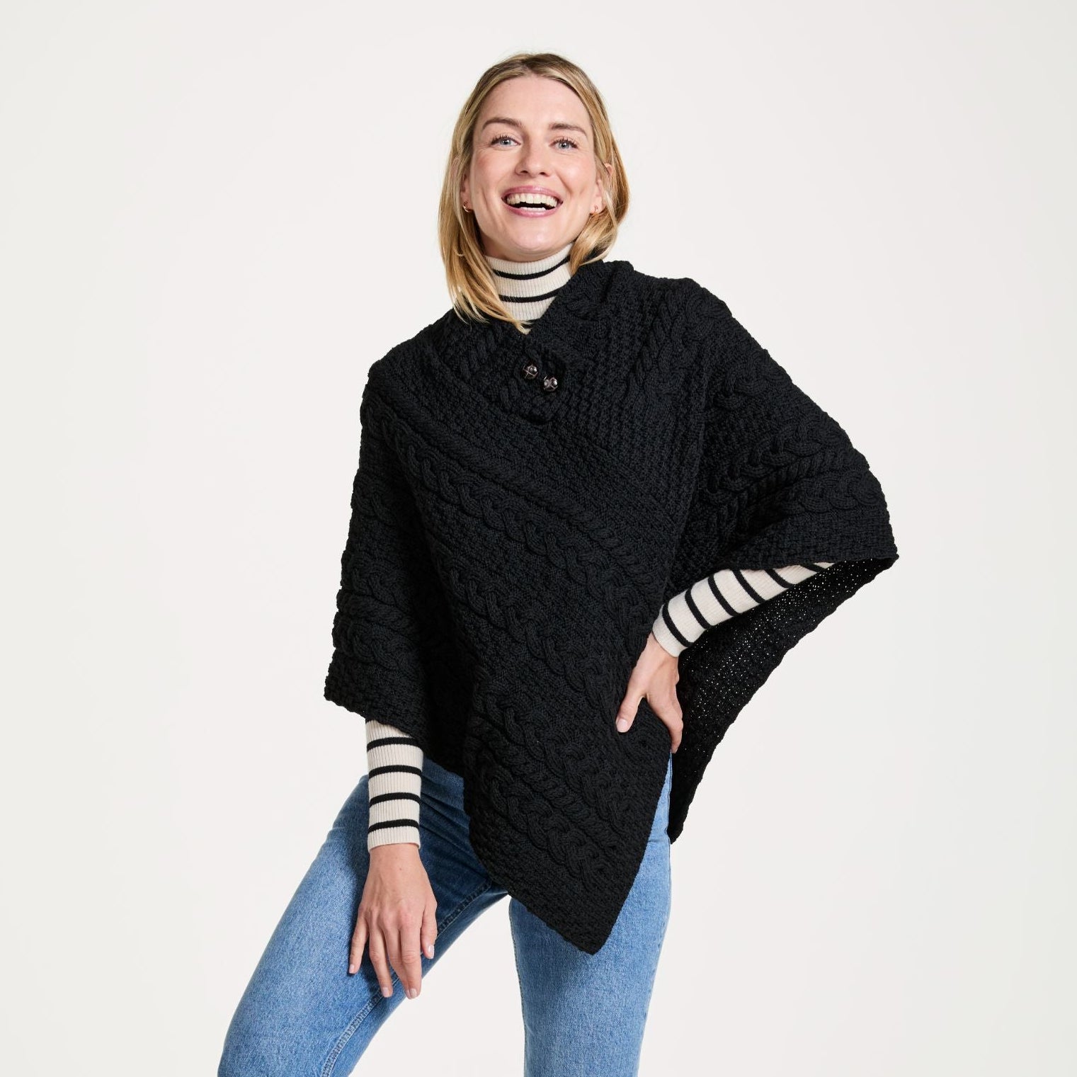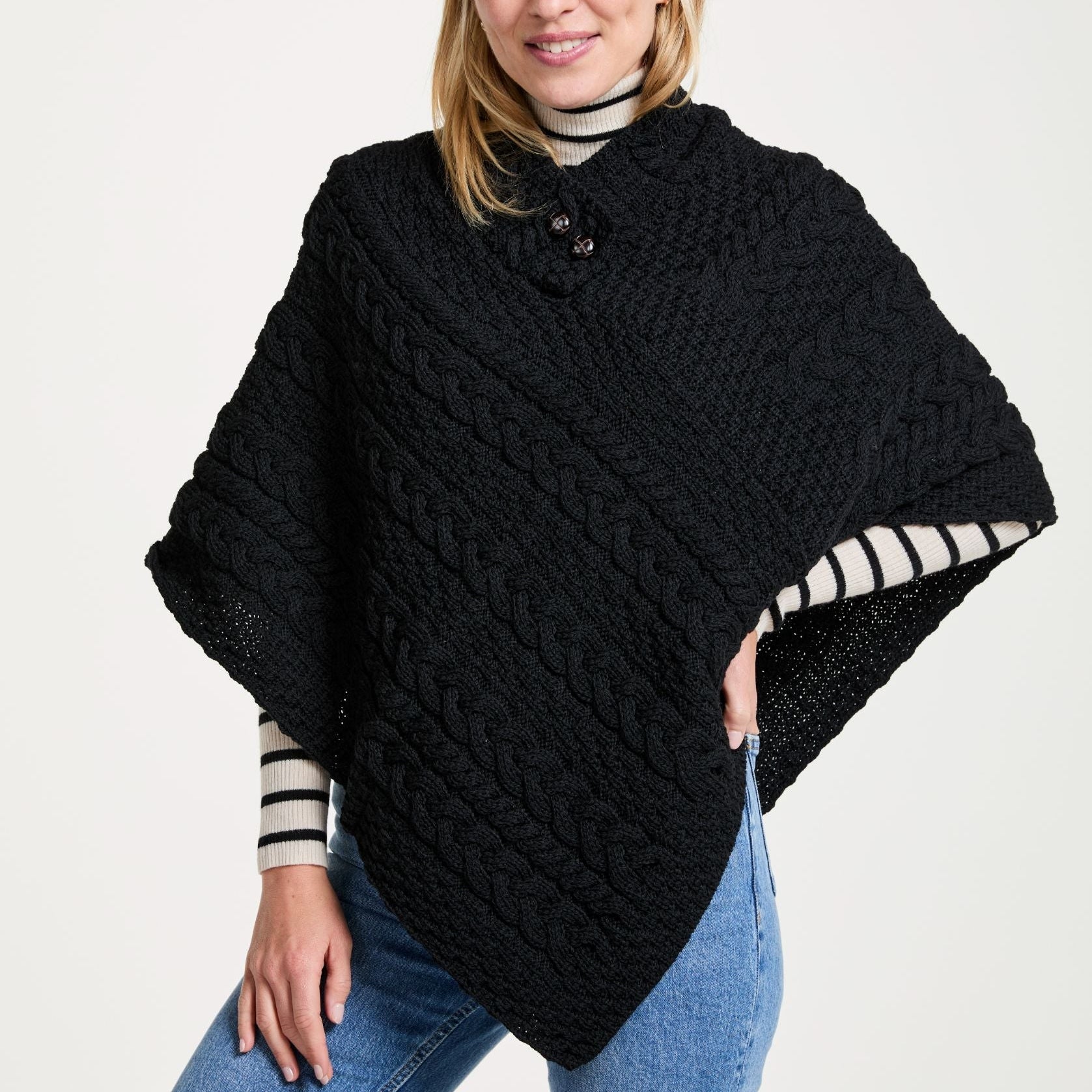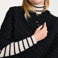 Easkey Ladies Classic Aran Button Black Poncho