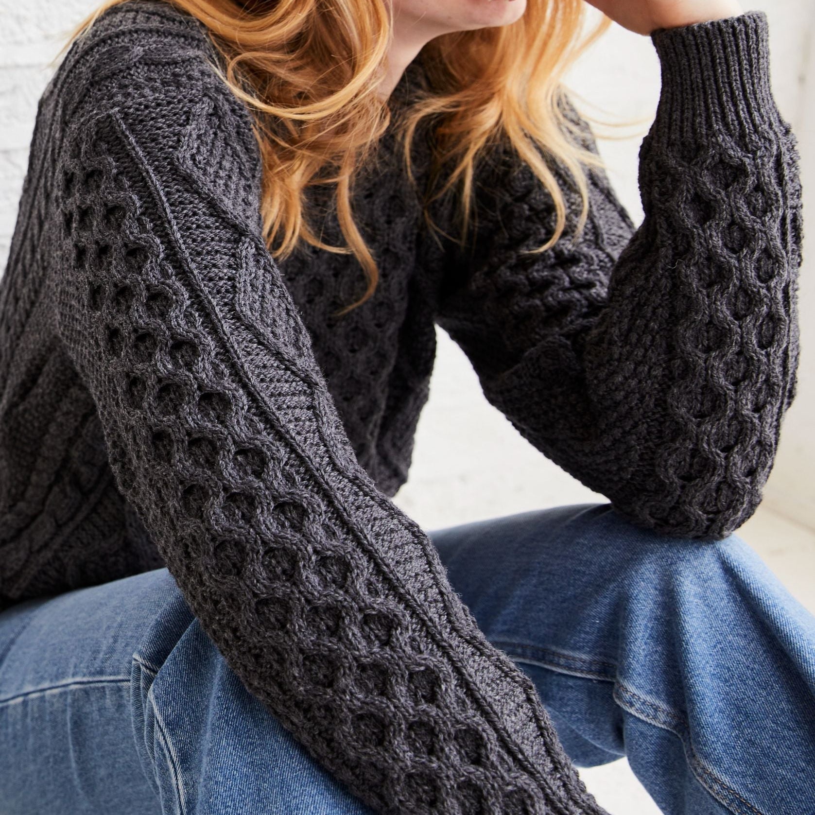 Éireann Ladies Traditional Aran Supersoft Charcoal Sweater