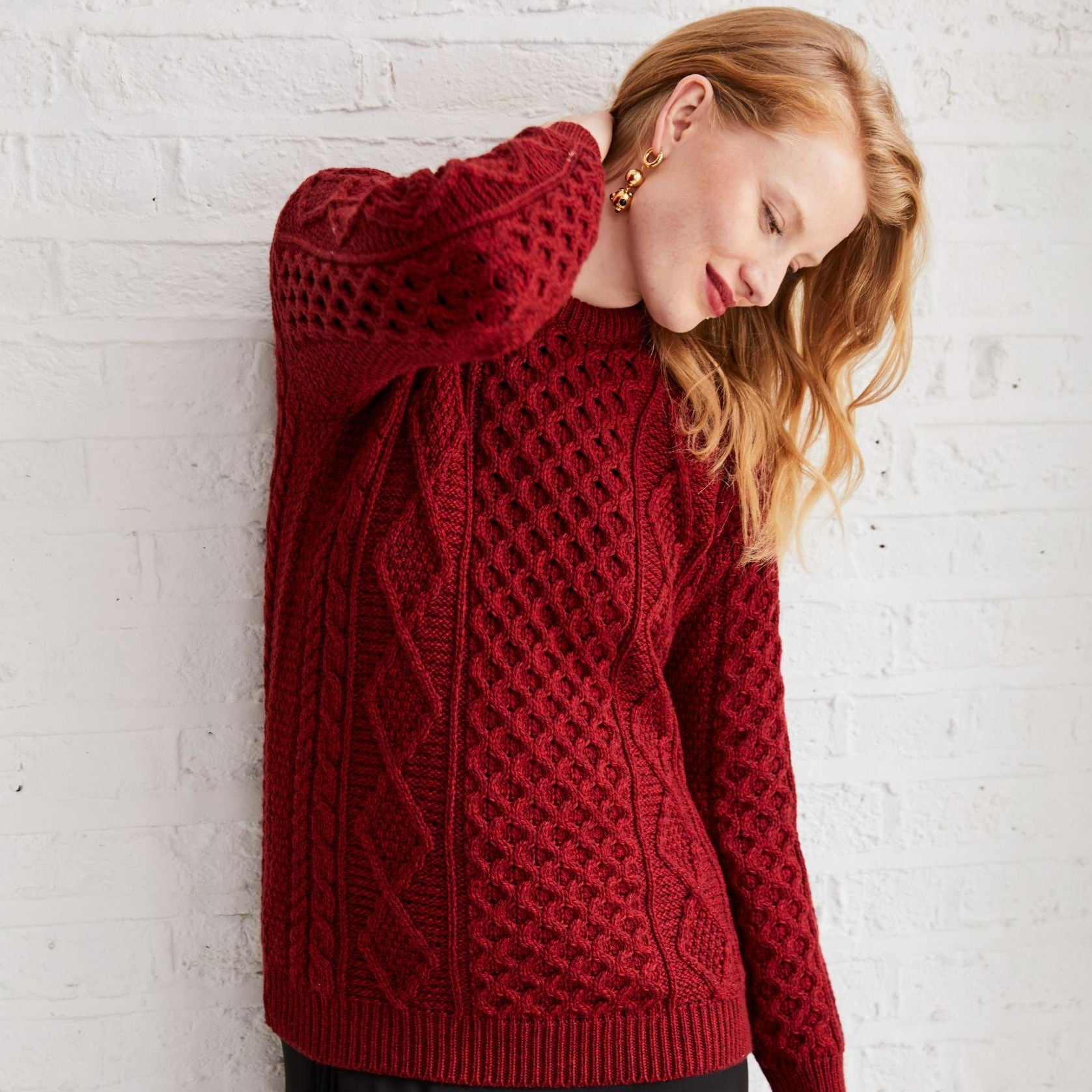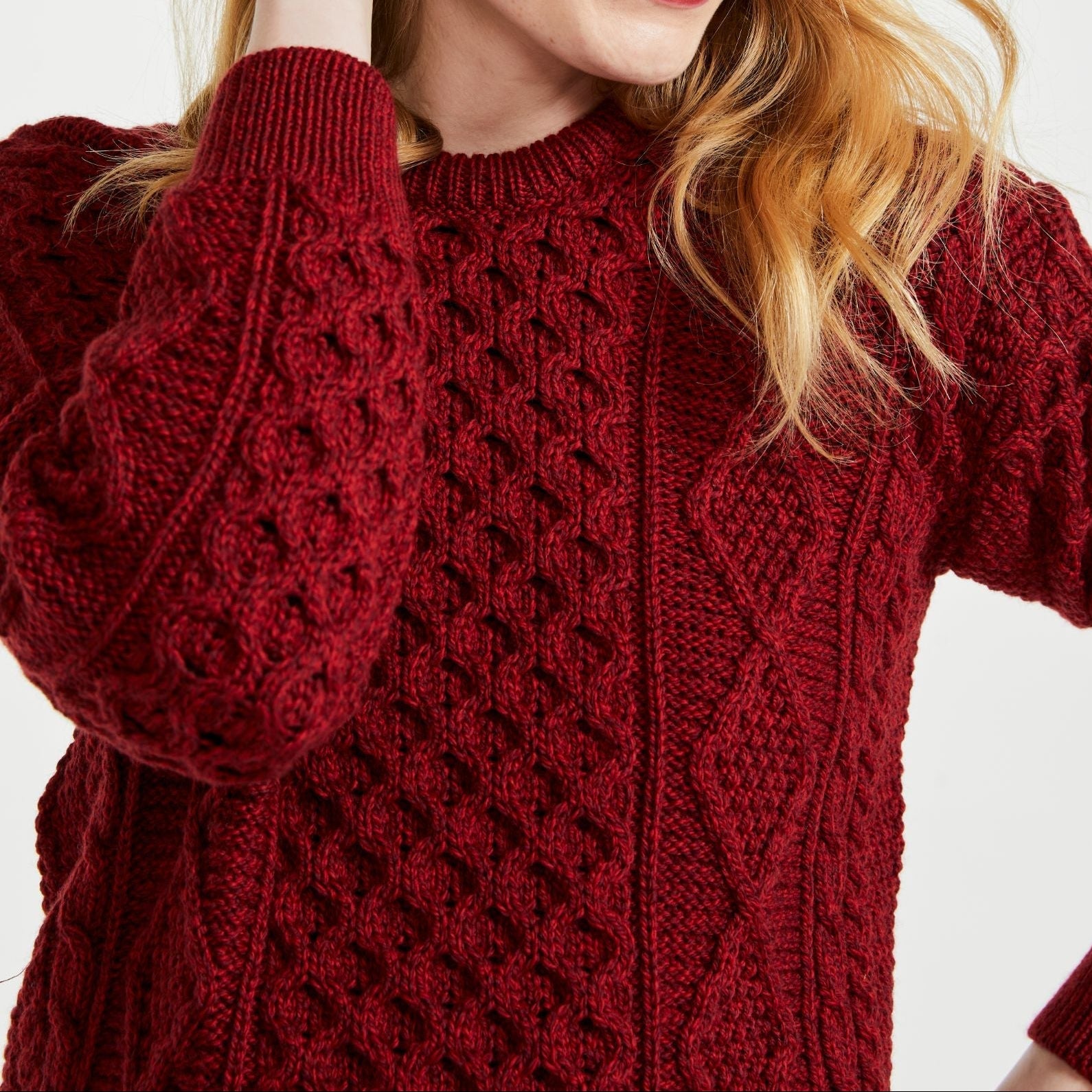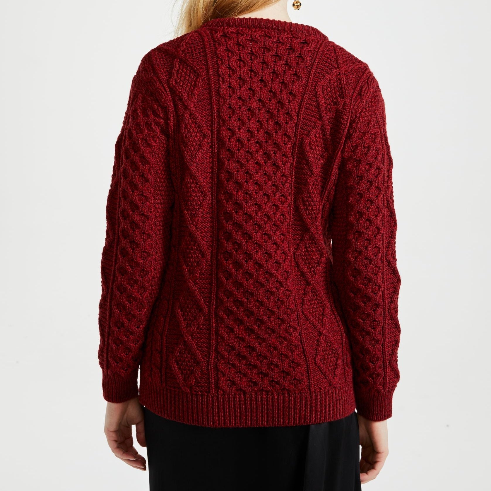 Éireann Ladies Traditional Aran Supersoft Red Sweater