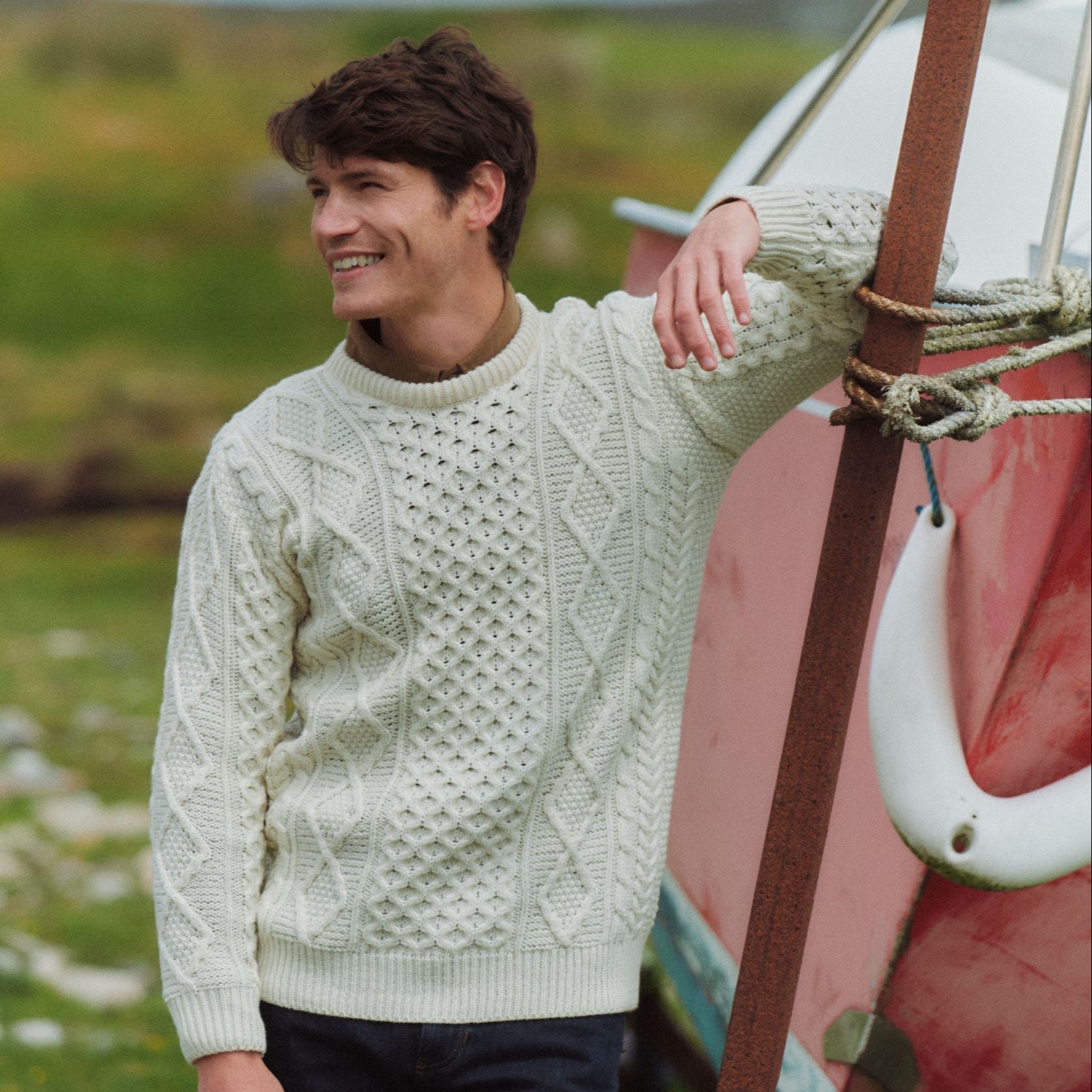 Designed with the modern man in mind, this sweater seamlessly combines classic style with contemporary comfort. The color adds a versatile touch, easily pairing with any outfit, from casual jeans to more formal attire. Whether you're heading out for a brisk walk in the countryside or enjoying a cozy evening by the fireplace, the Eireann Men's Traditional Aran Supersoft Sweater offers the warmth and style you need.