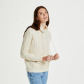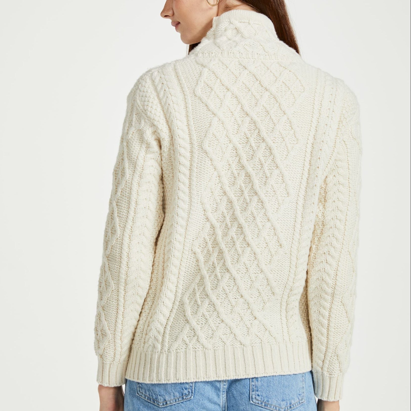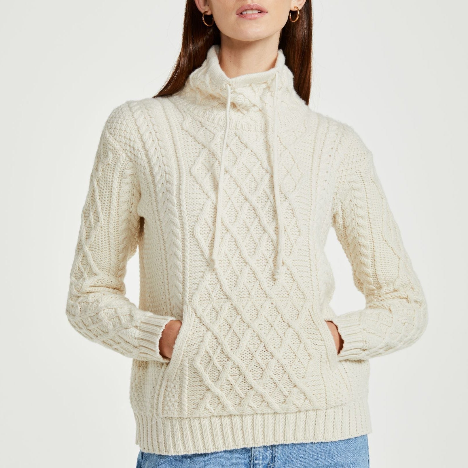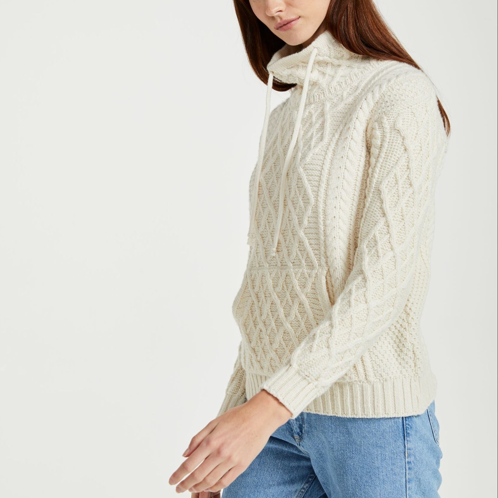 Crafted with luxurious Supersoft Merino wool, the Enniscoe Drawstring Sweater is equal parts comforting and contemporary. This choice brings a sporty edge to our classic knitwear, with a fresh drop shoulder and useful kangaroo pouch. Not forgetting our rich Aran tradition, the Enniscoe Drawstring Sweater brings with it a medley of beautiful stitches, including diamond cables on the central panels and rope cables for a snug fit.