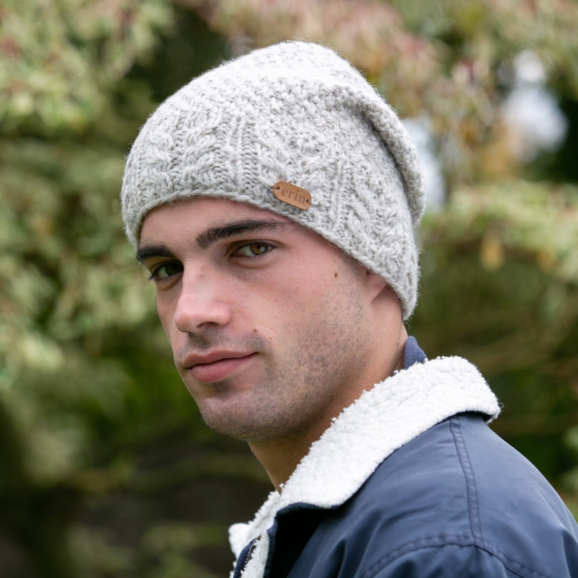 Knitted in an Aran Cable Floppy pattern in an Oatmeal colour with button down detail on the back made with 100% Wool with a Polyester fleece lining for extra warmth and comfort, ideal on a cold winter’s day. Soft to the touch and very warm and easy to wear.