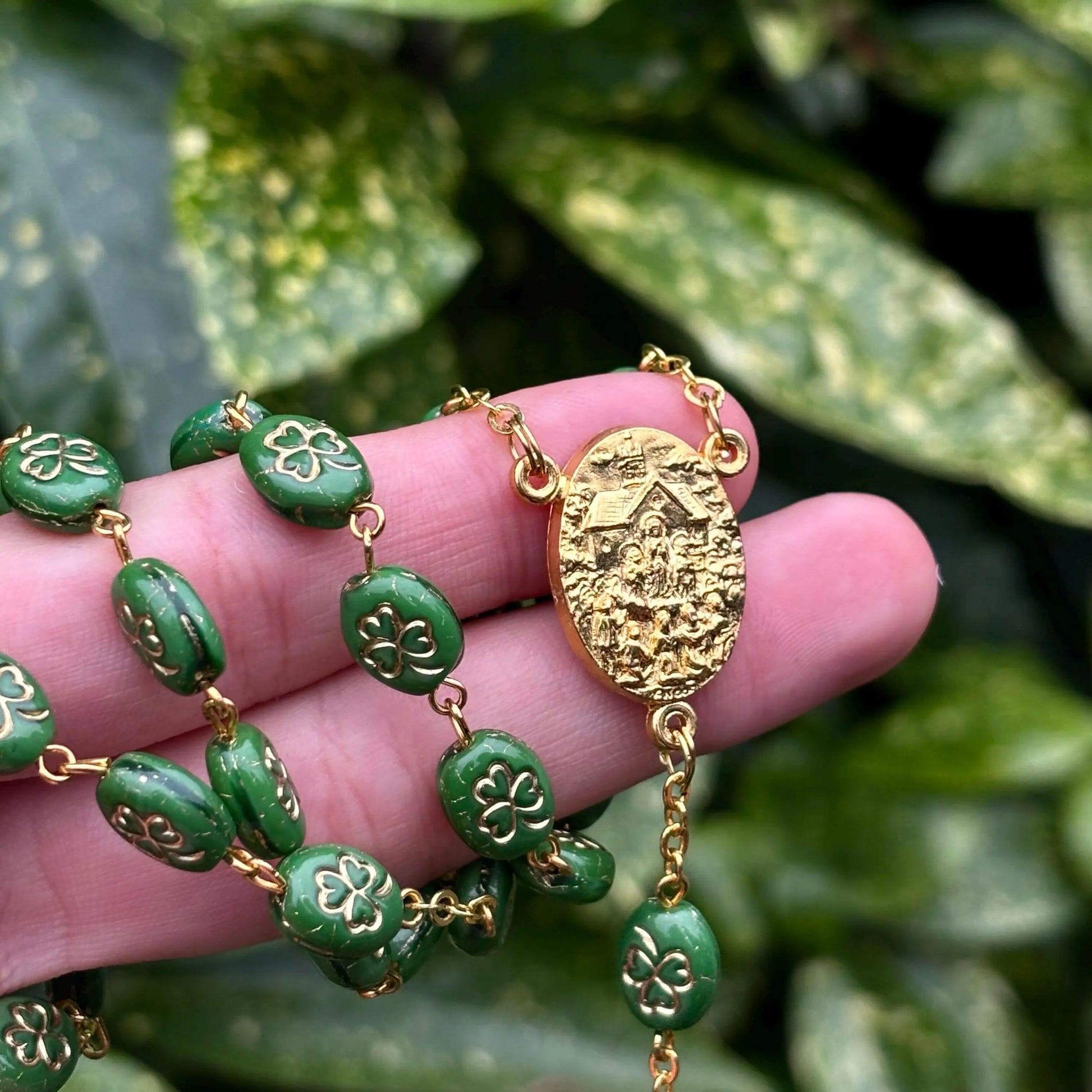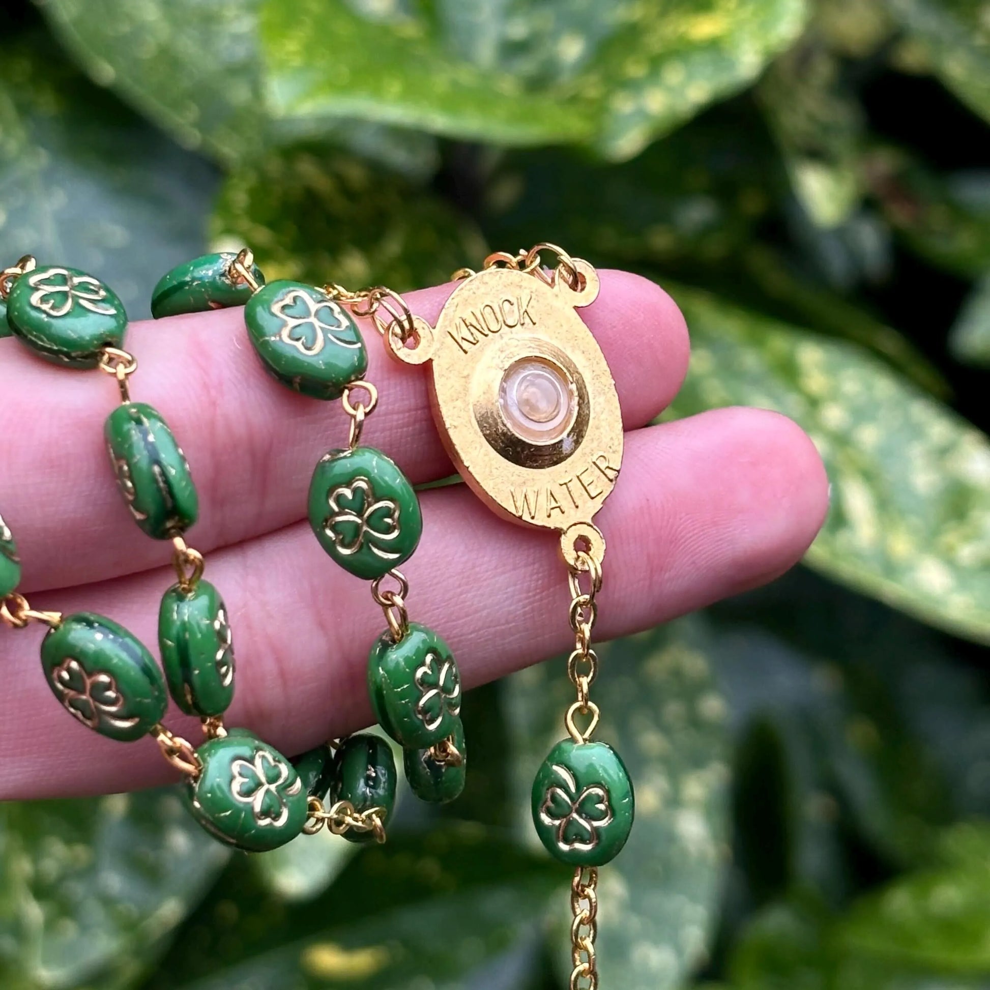 Gilt Shamrock Rosary Beads With Knock Water Center