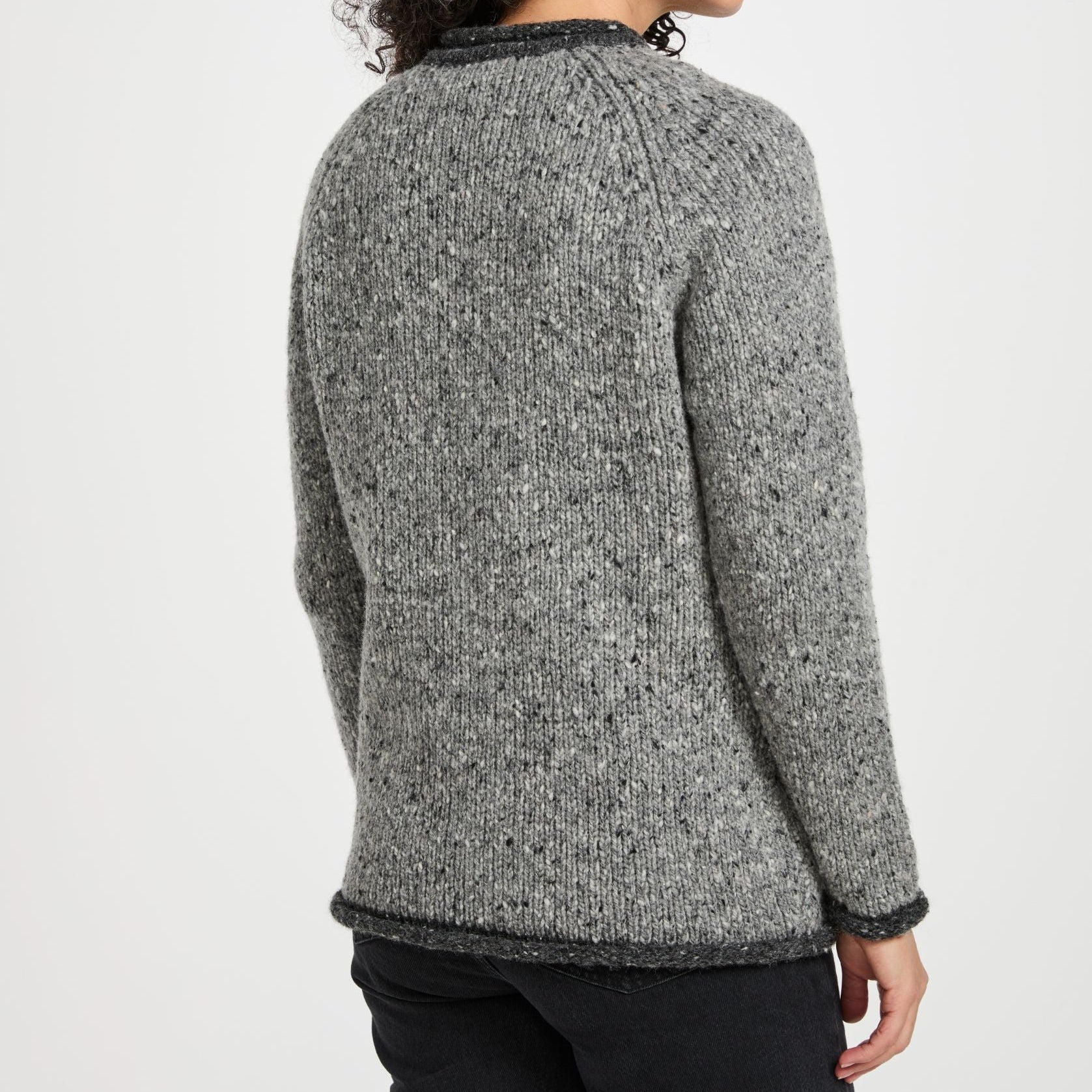 Glenariff Ladies Raglan Donegal Tweed Grey/Light Grey Cardigan