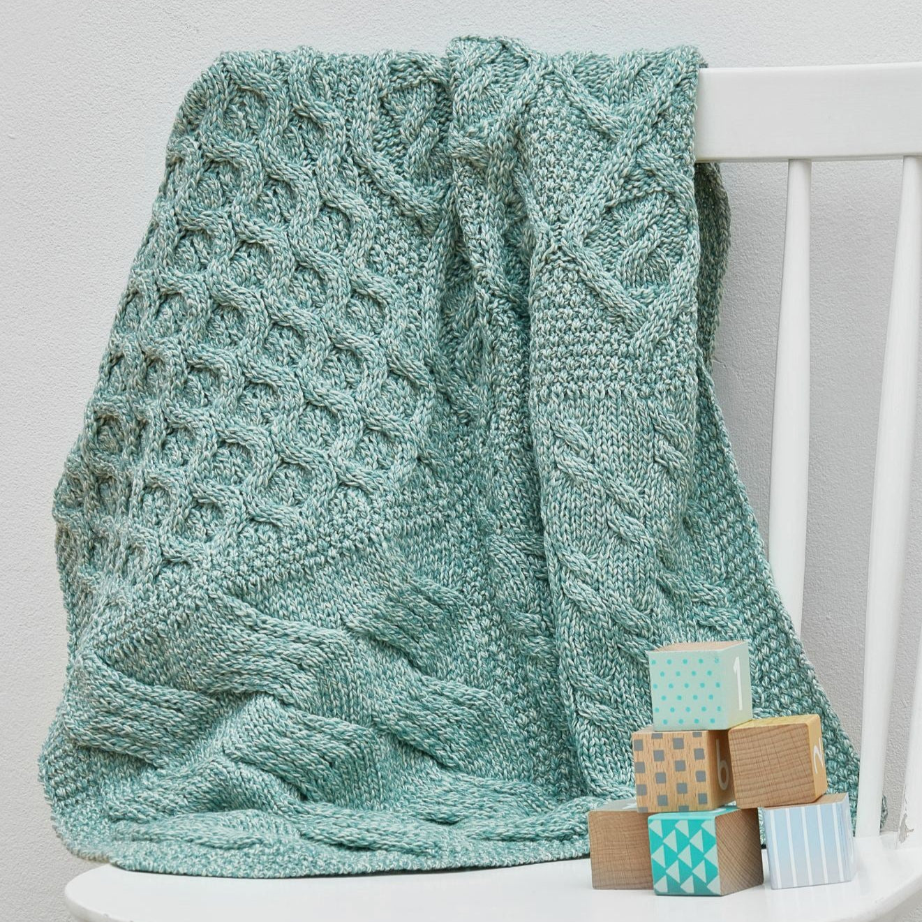Glora Aran Patchwork Cot Throw - Teal