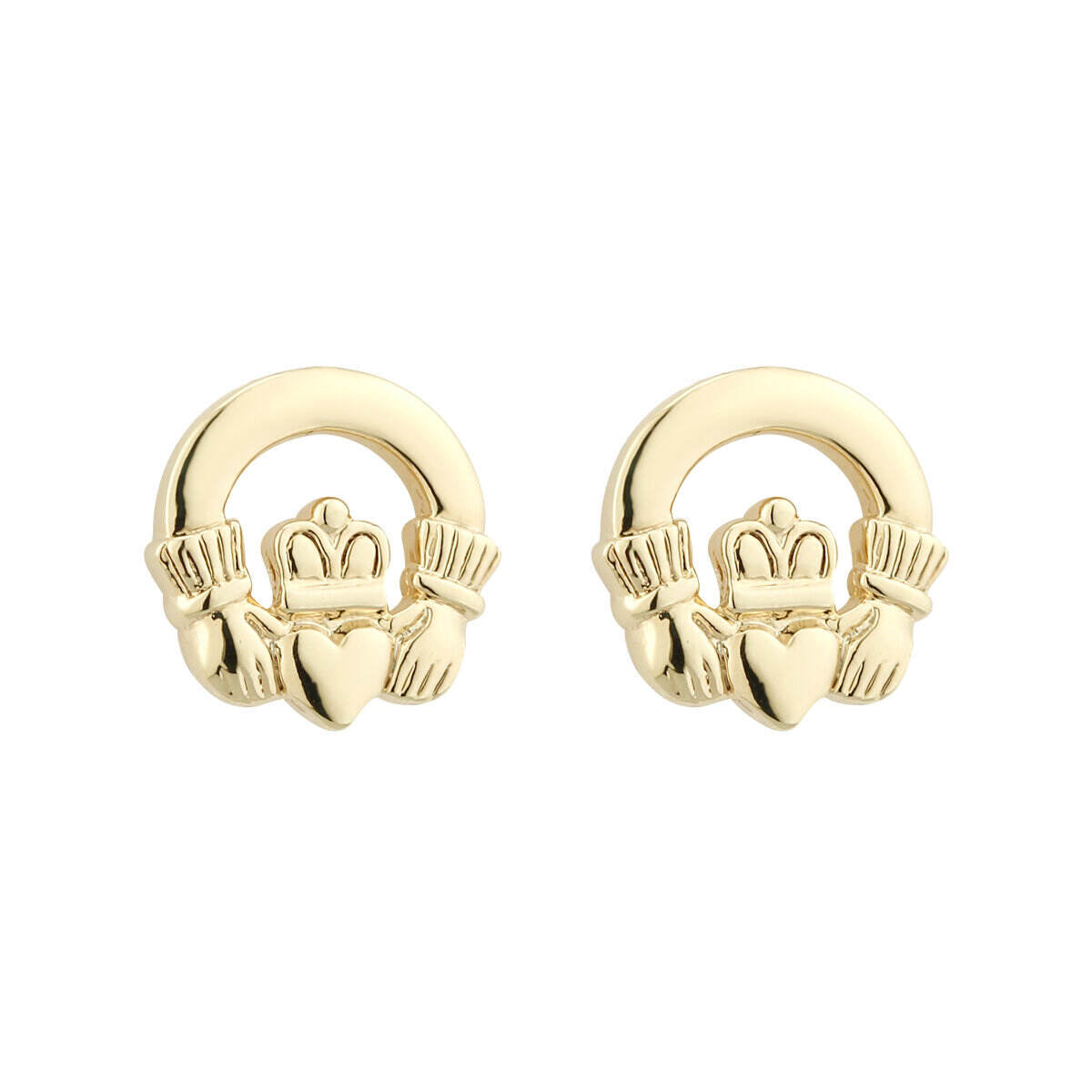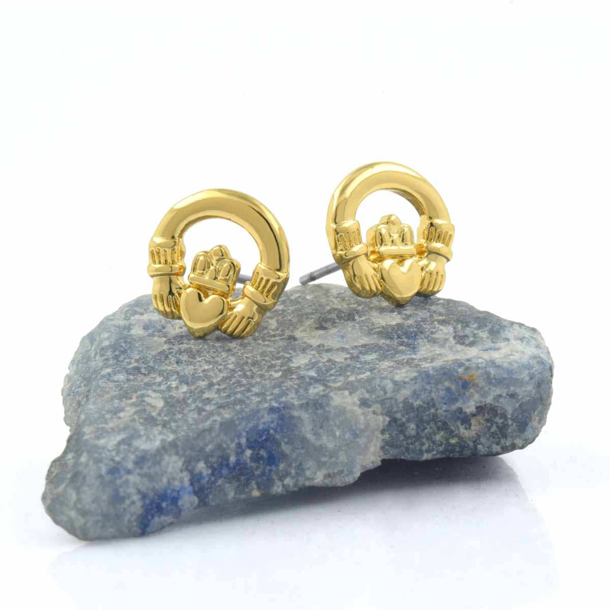 Our stunning gold plated stud earrings are the perfect gift for a loved one! Featuring a beautiful Claddagh with a sparkling cut-glass stone, these earrings are the perfect accessory for any outfit.