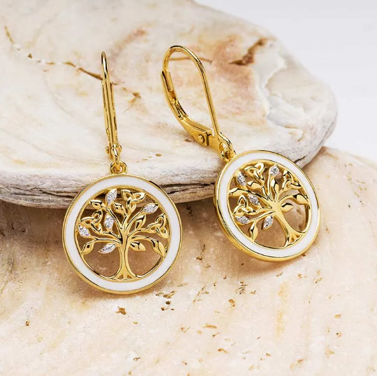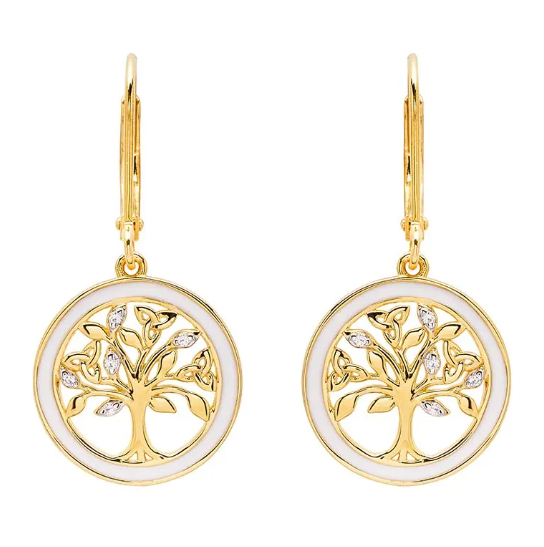 Gold Vermeil Celtic Tree of Life Earrings with Enamel