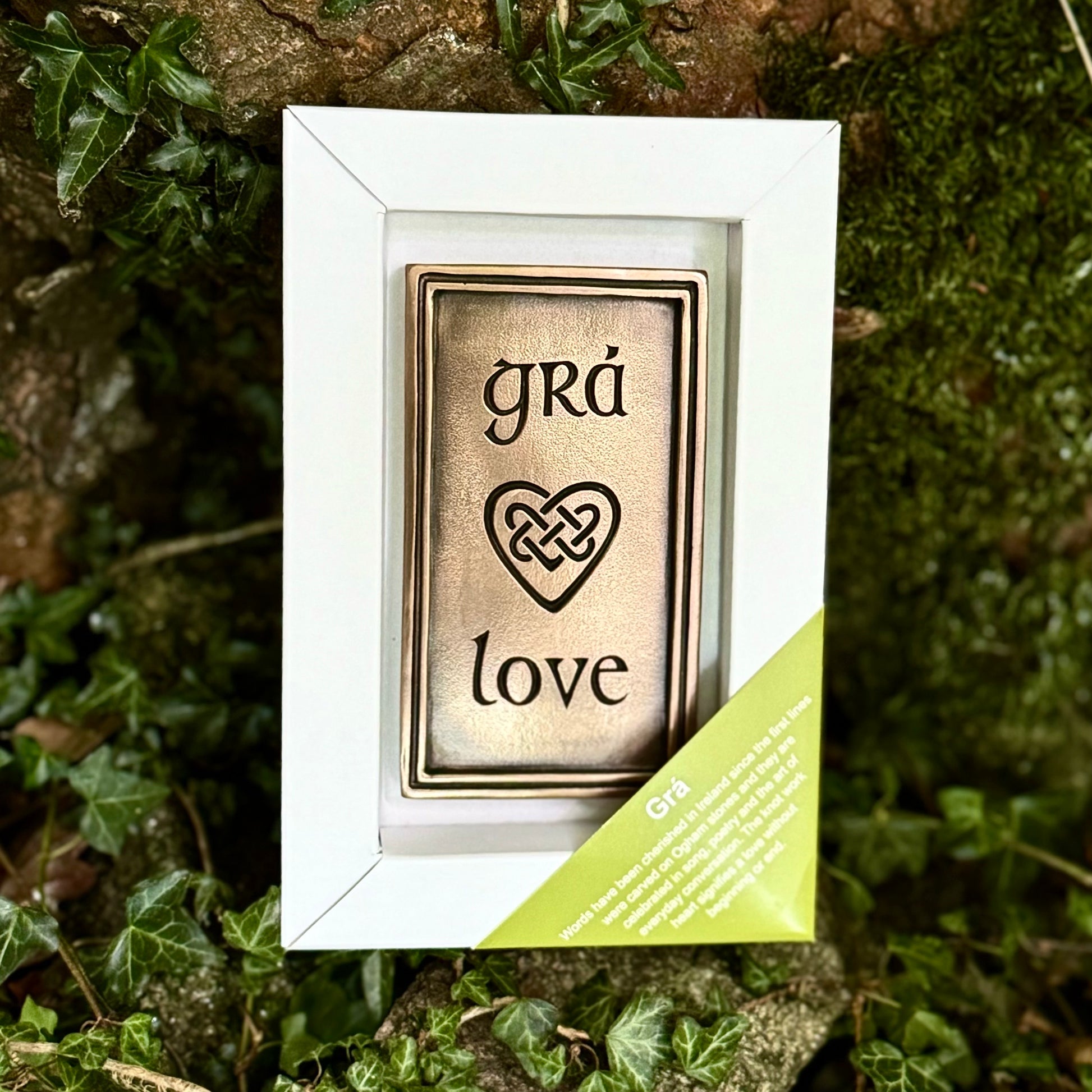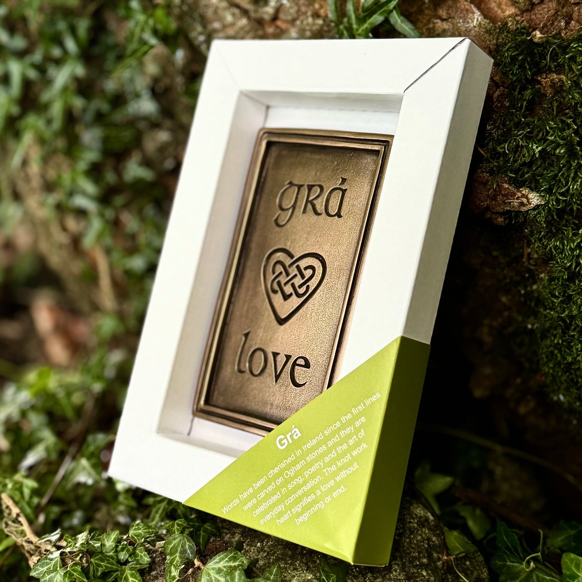 The knot work heart celebrates a love without beginning or end. Words have been cherished in Ireland since the first lines were carved on Ogham stones and they are celebrated in the song, poetry and the art of everyday conversation.