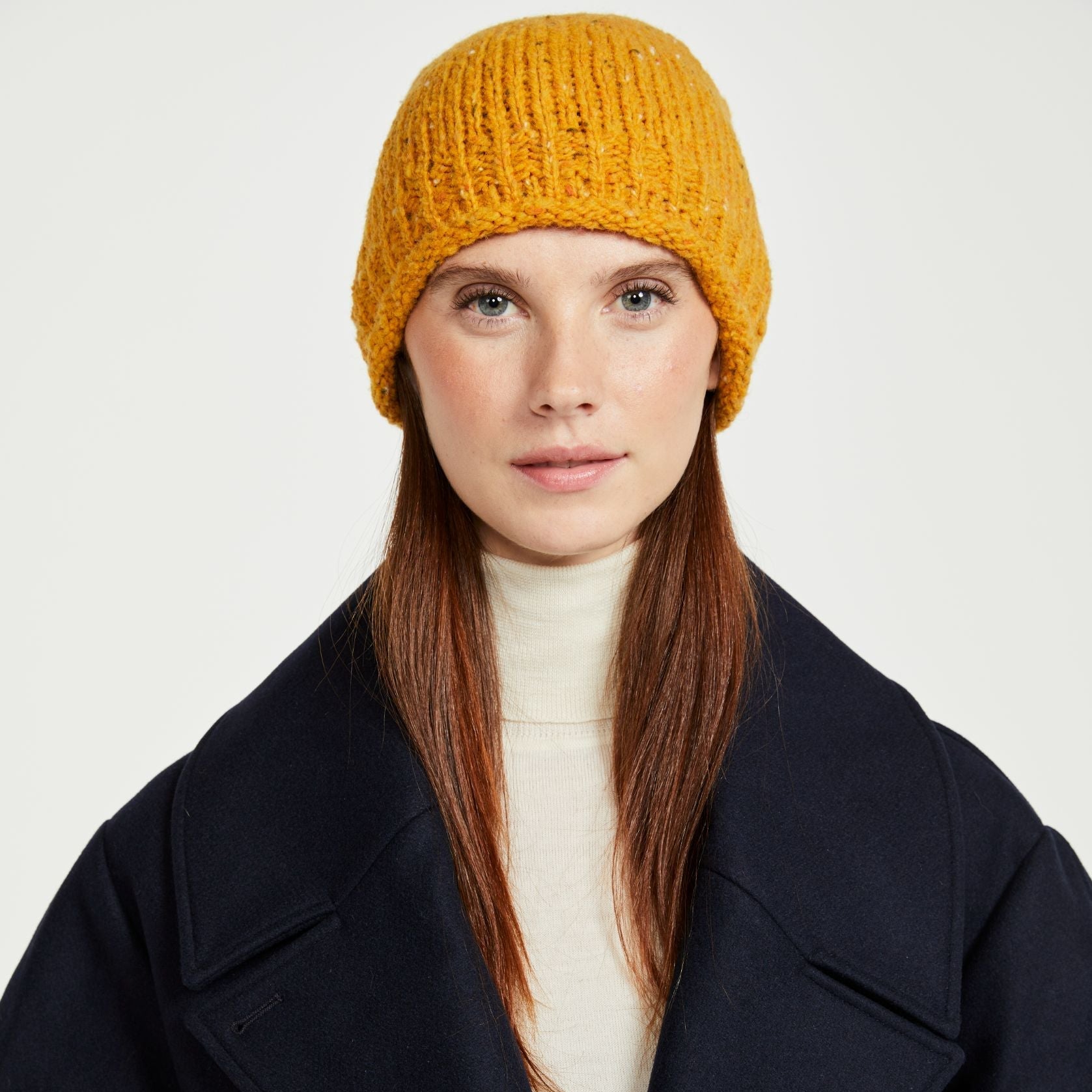 The Hazelwood Roll Hem Beanie is the perfect addition to your capsule wardrobe, if you’re in search of a high quality, cosy hat to keep you warm and stylish all winter. This beanie style hat with a rolled edge is crafted with a plain stitch, highlighting the coloured nepps in the yarn, for an earthy, textured, natural look. In a selection of truly mesmerising colours, you will easily pair this with other pieces from our Aran range.