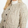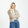 Indulge in the comfort, warmth, and elegance of the Inagh Ladies Aran Cardigan - where classic design meets modern fashion.