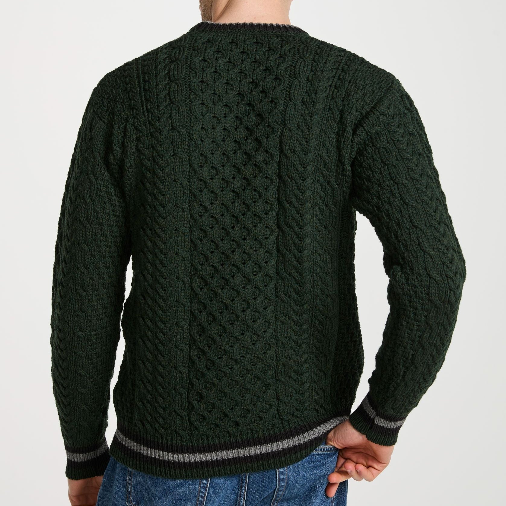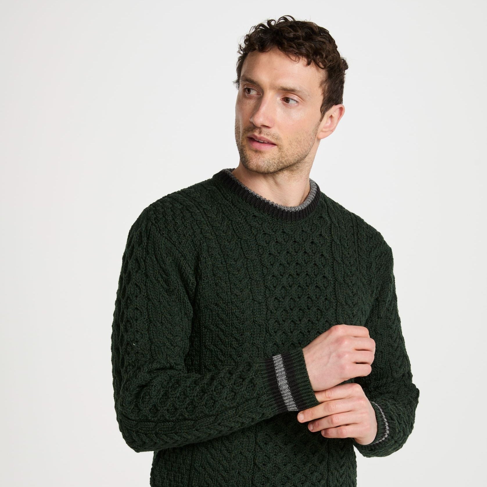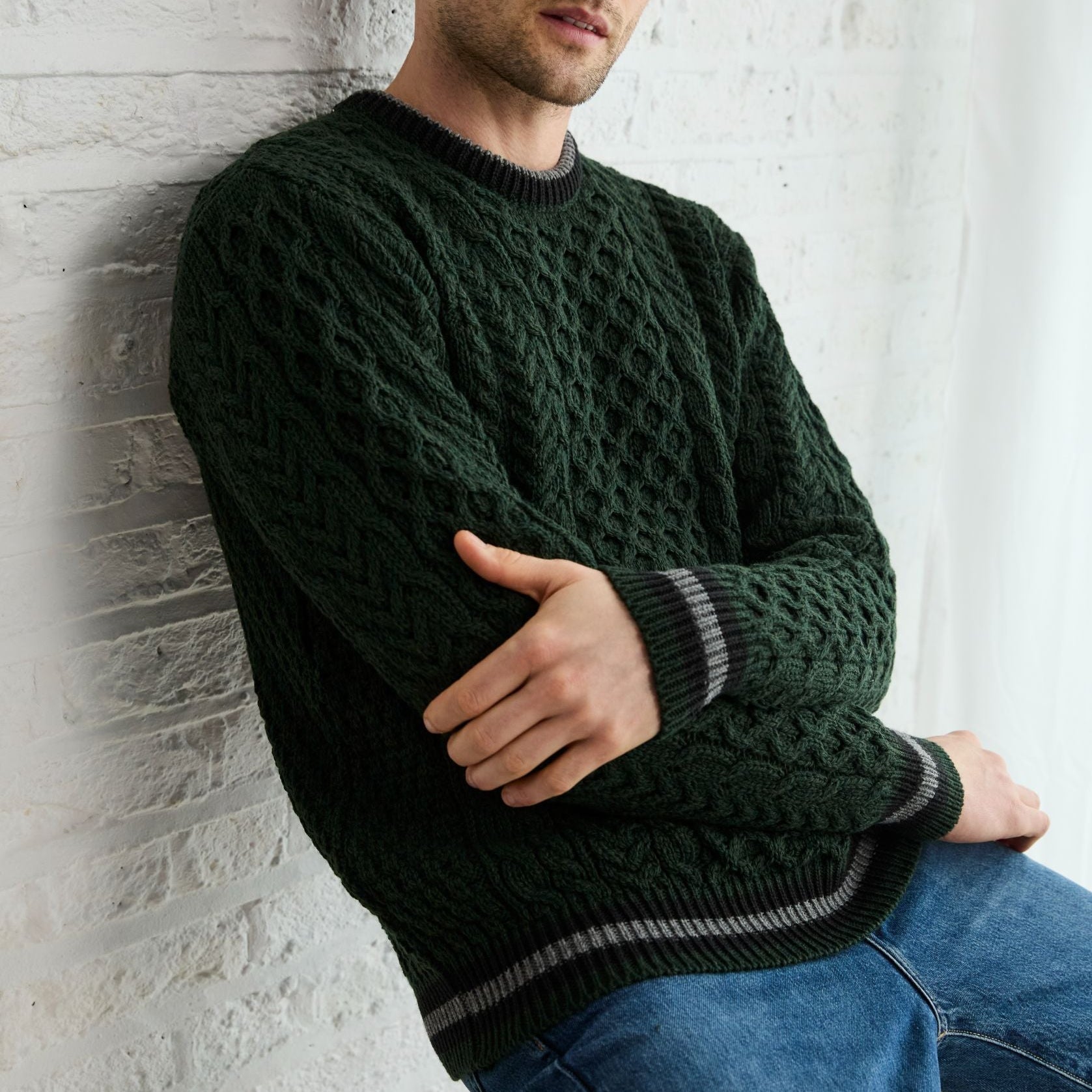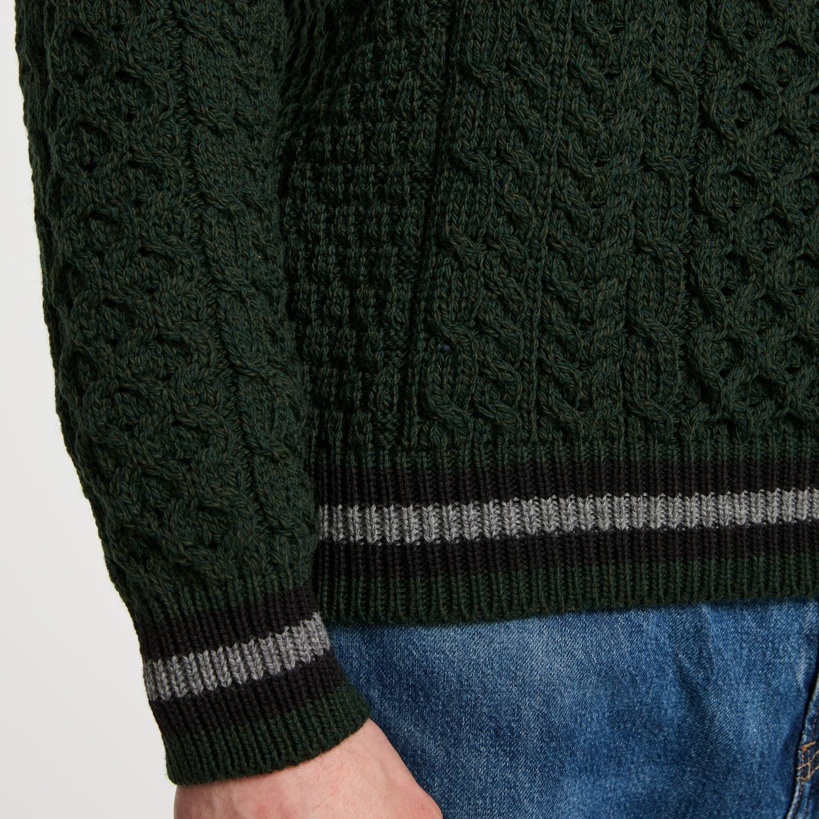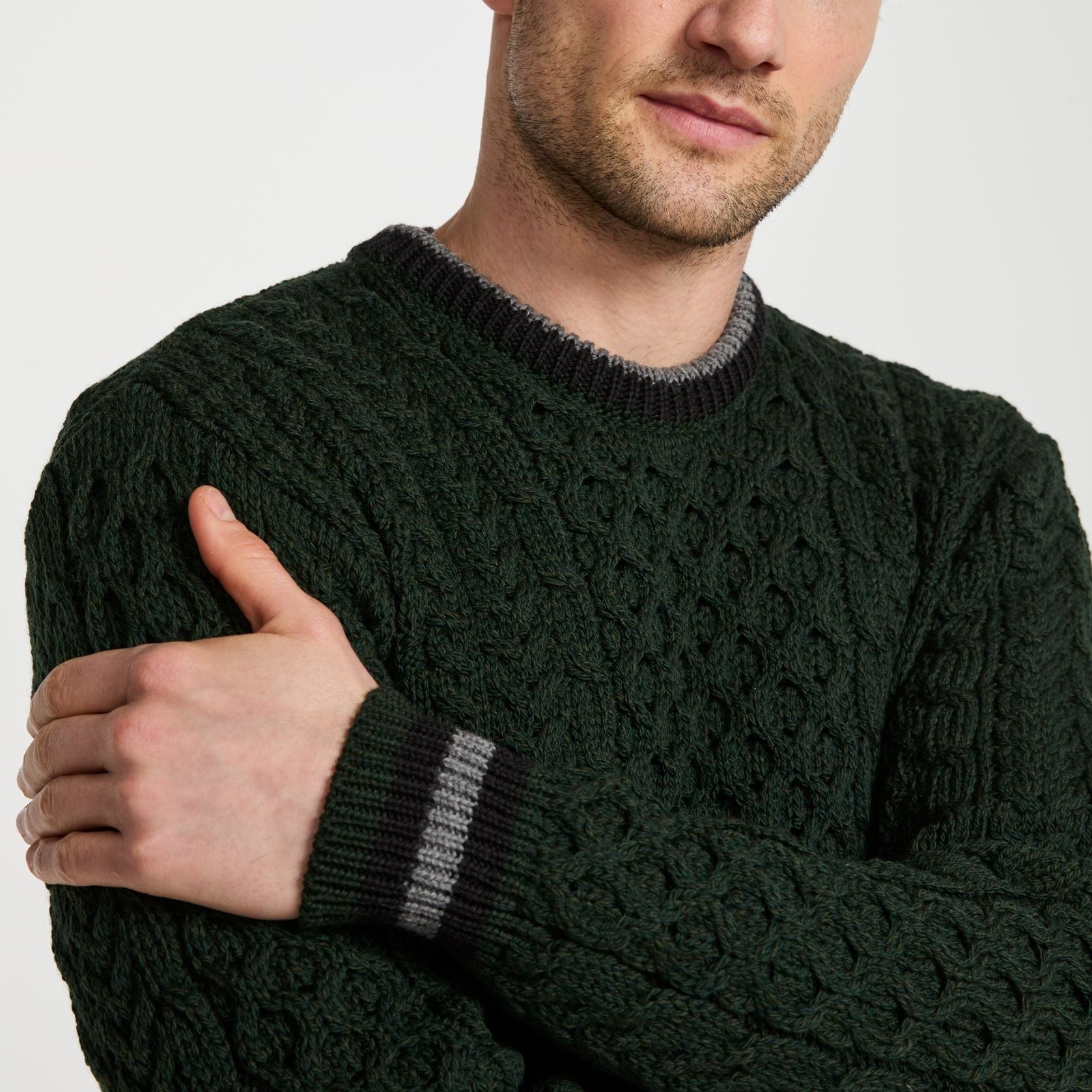 Inishbeg Stripe Green Crewneck Aran Sweater