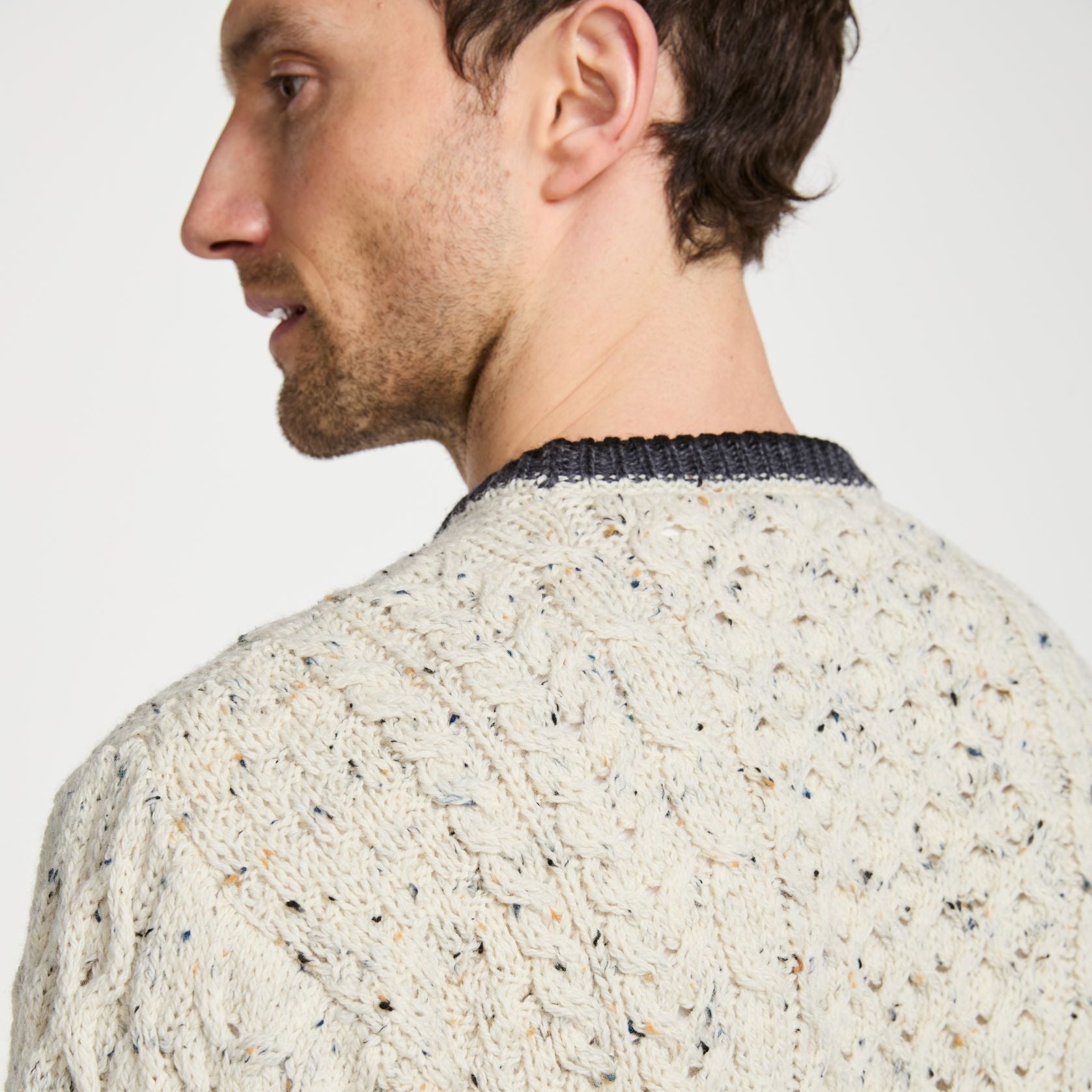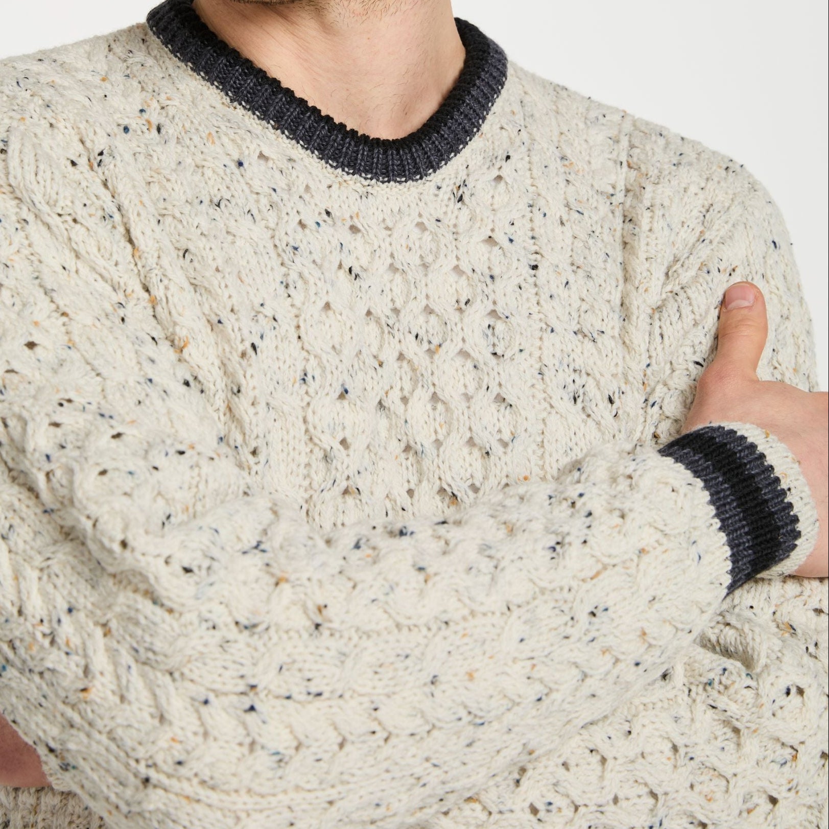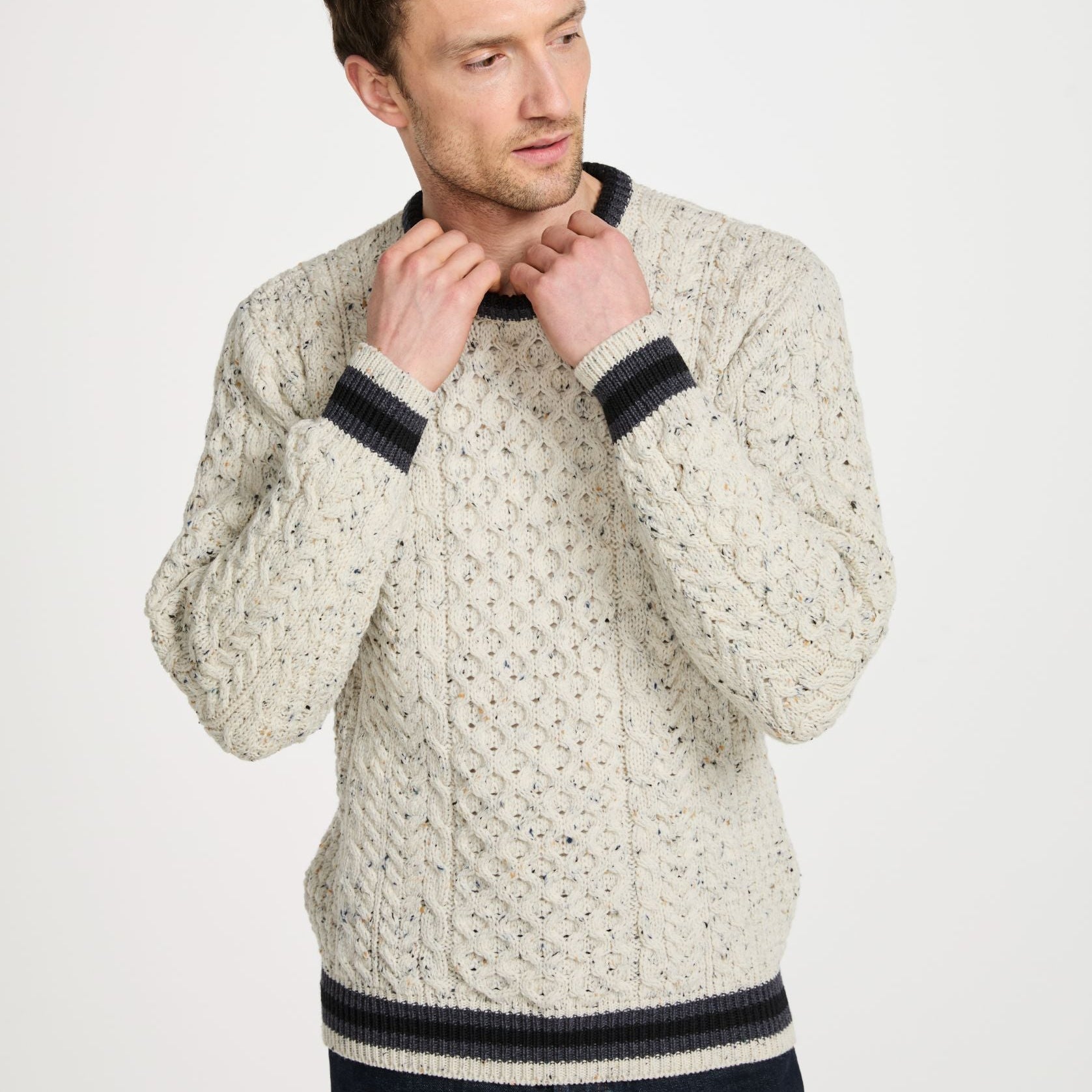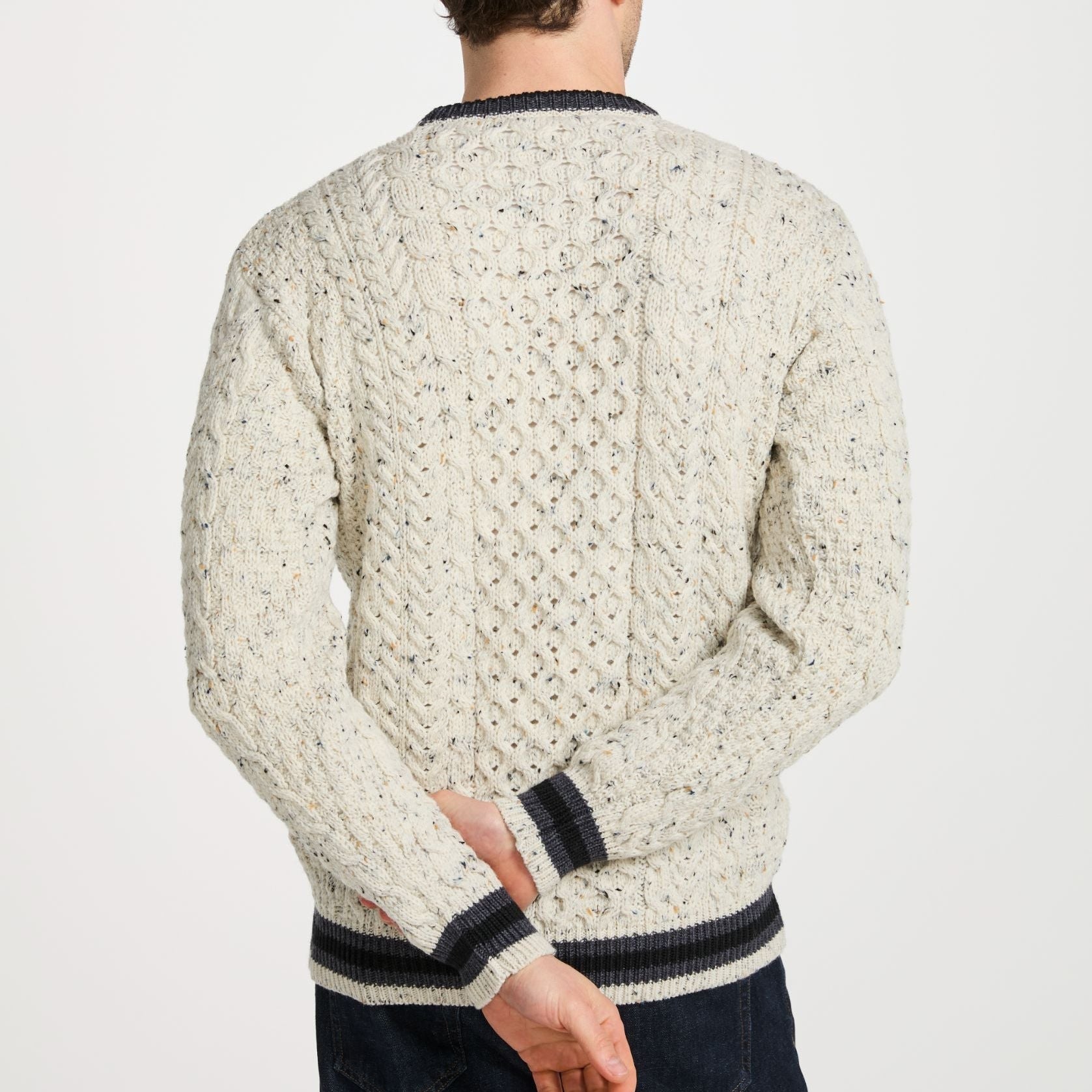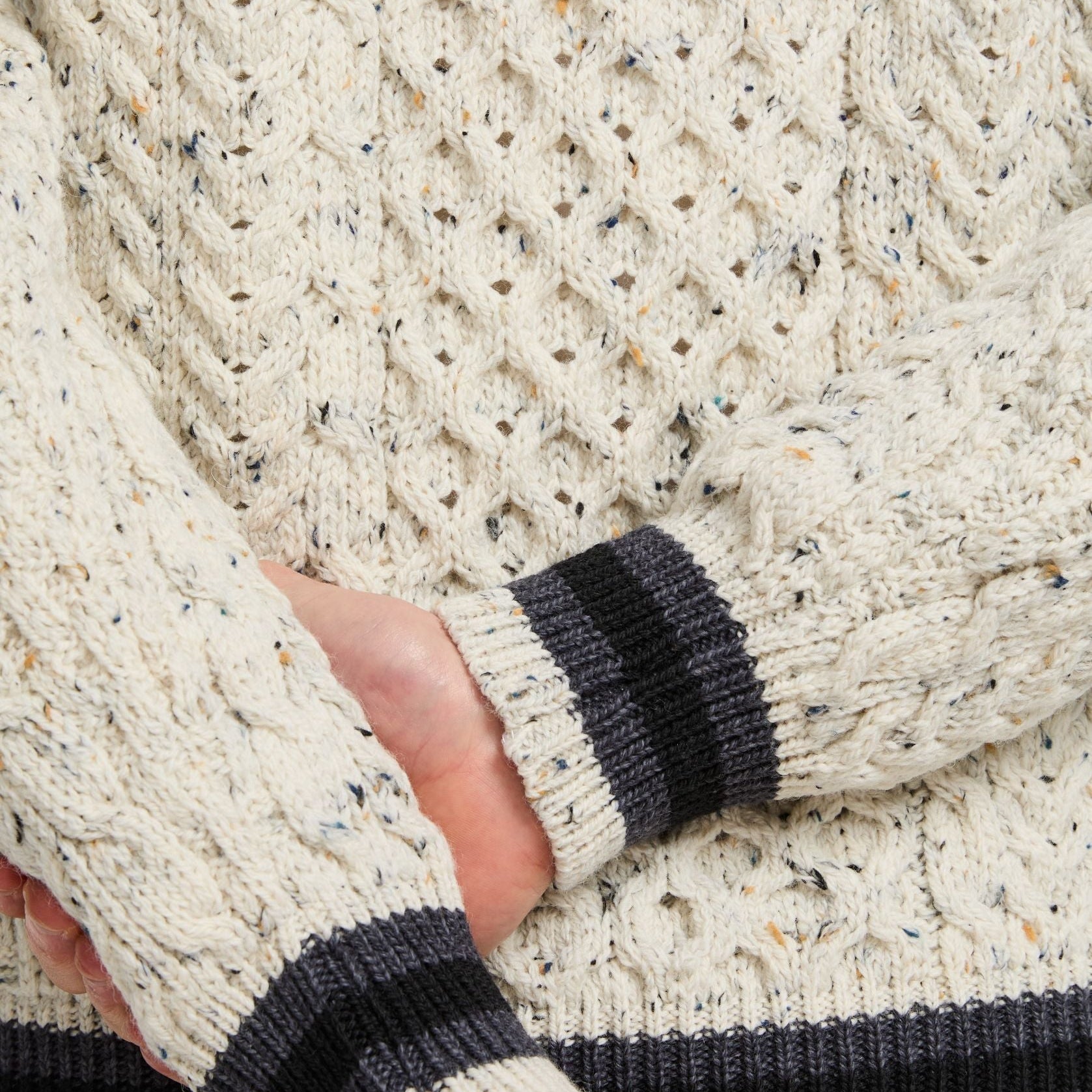 Inishbeg Stripe Oat Crewneck Aran Sweater