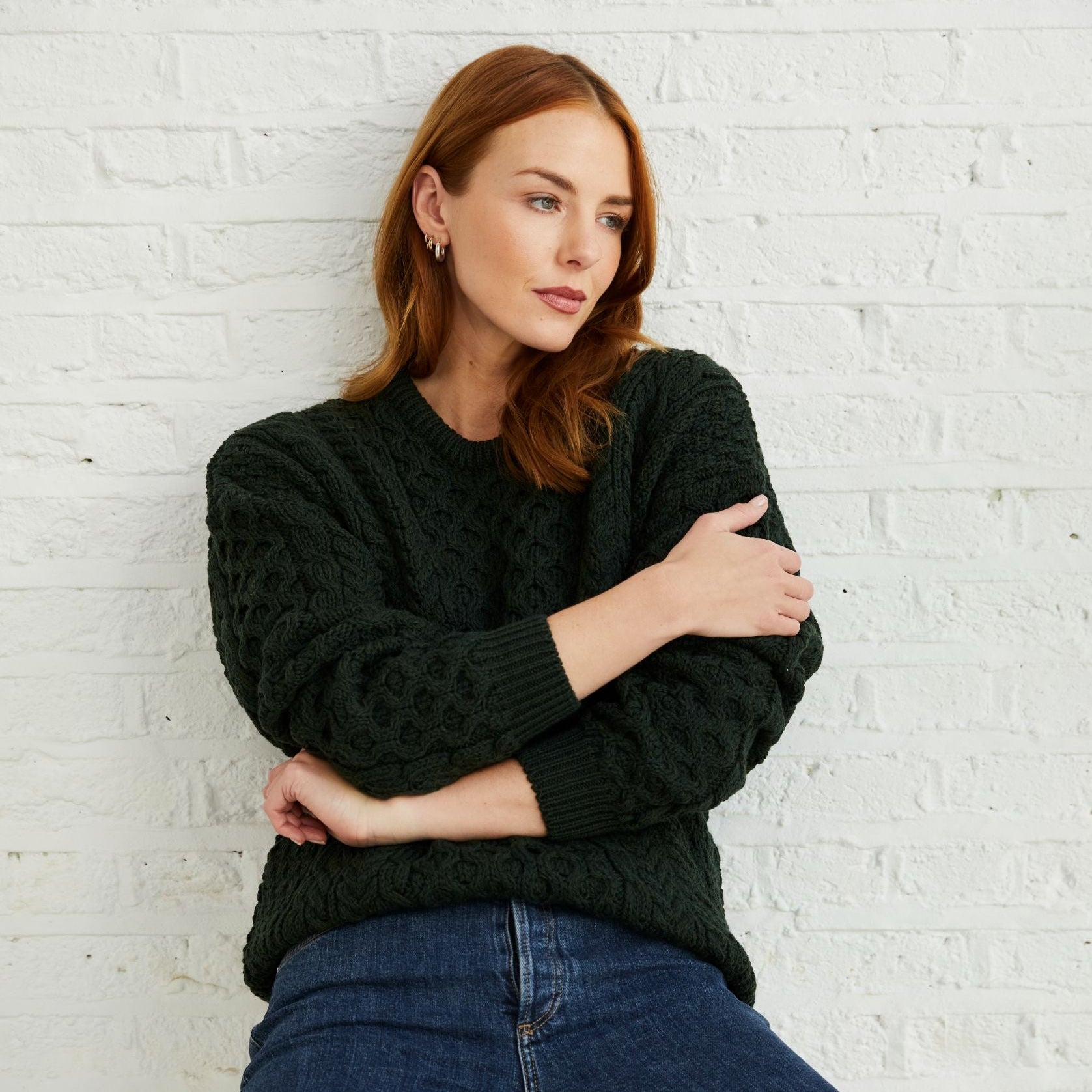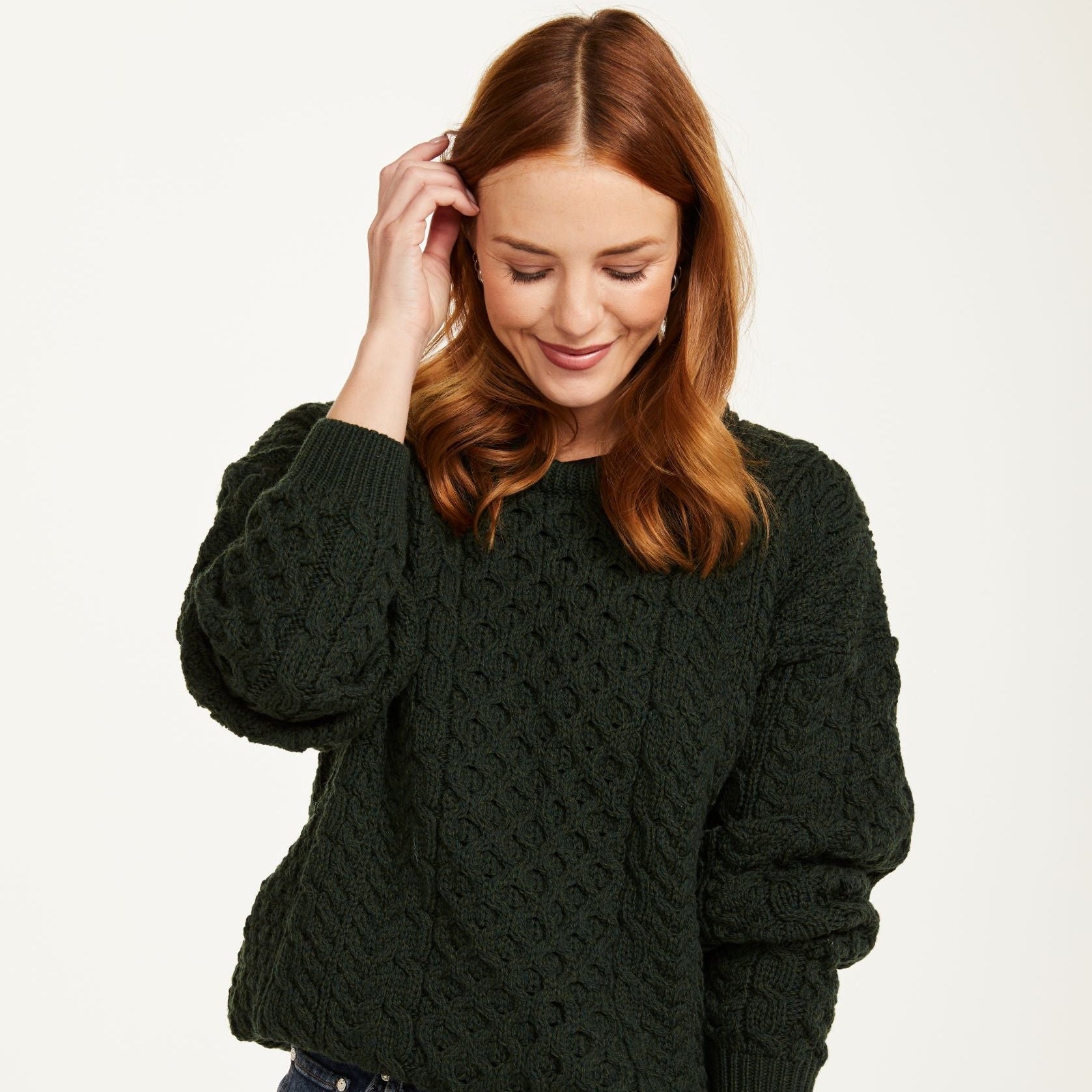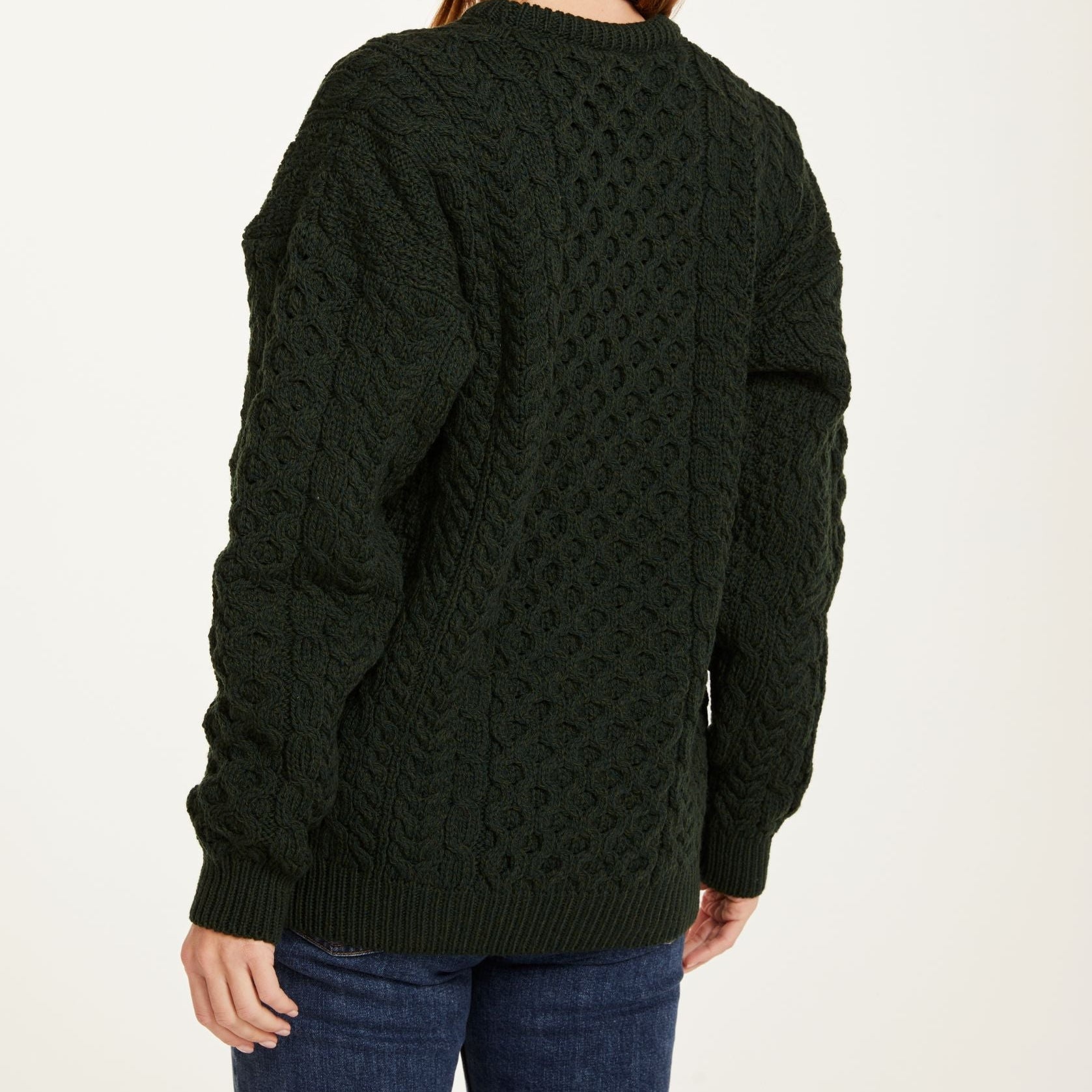 Inisheer Traditional Ladies Aran Forest Green Sweater
