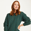 The Inisheer sweater showcases a classic Aran design, featuring intricate cable and honeycomb stitches that not only add visual appeal but also carry rich historical significance, symbolizing the rugged landscapes and seafaring legacy of the Aran Islands. The deep color provides a modern twist, making it a versatile addition to any wardrobe, perfect for both casual and sophisticated ensembles.