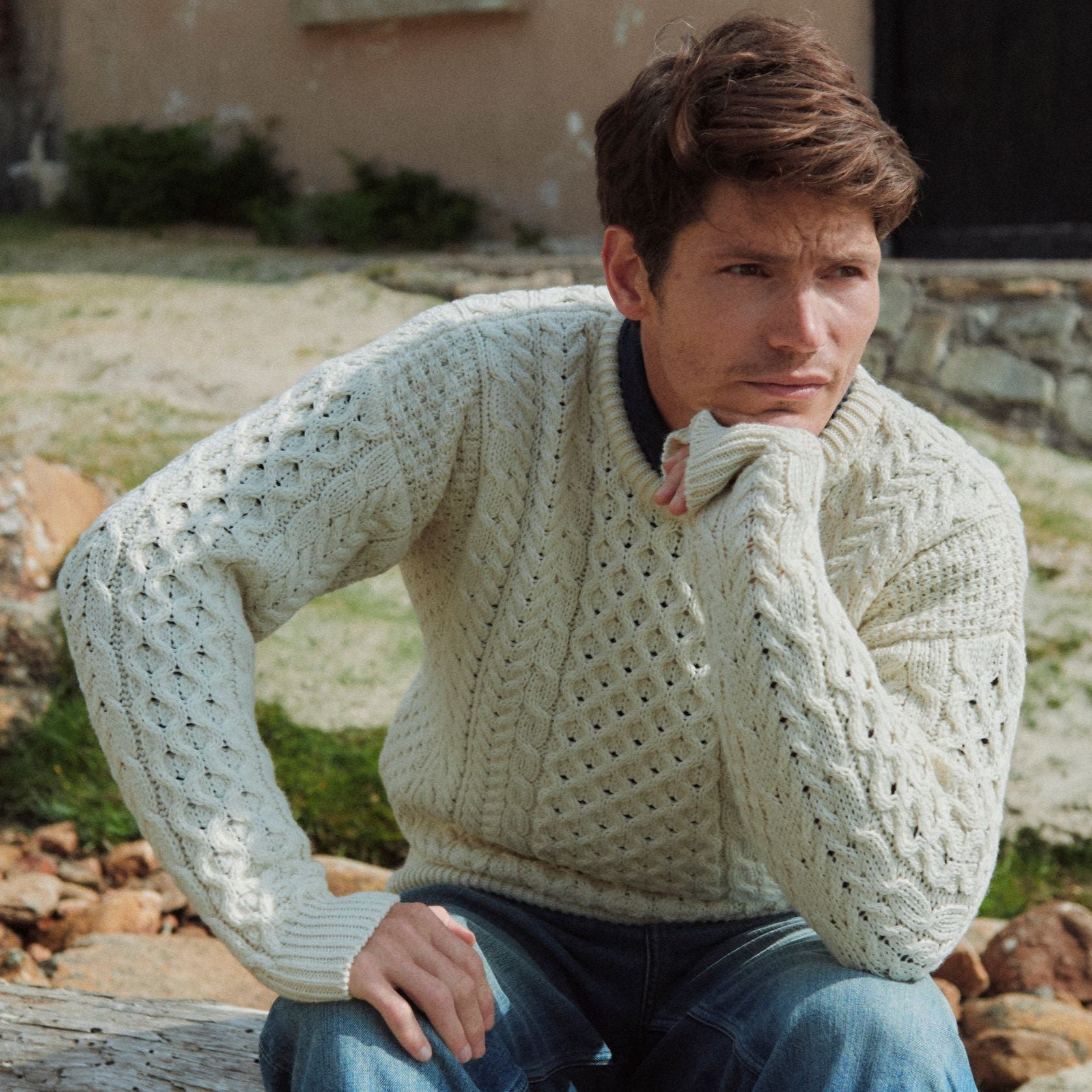 Inisheer Traditional Natural Mens Aran Natural Sweater