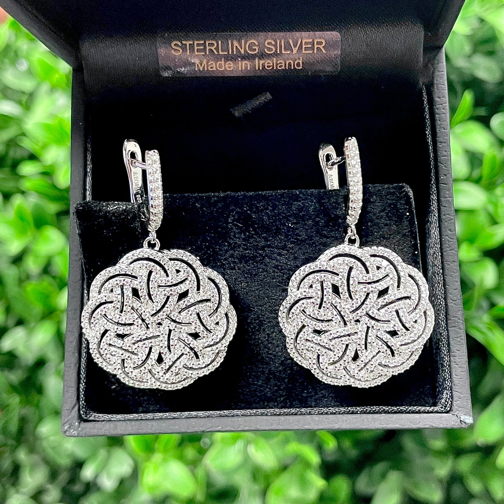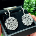 These dazzling Interlaced Celtic Knot Earrings are a show stopper. They are in sterling silver and covered in beautiful white Cubic Zirconia stones.