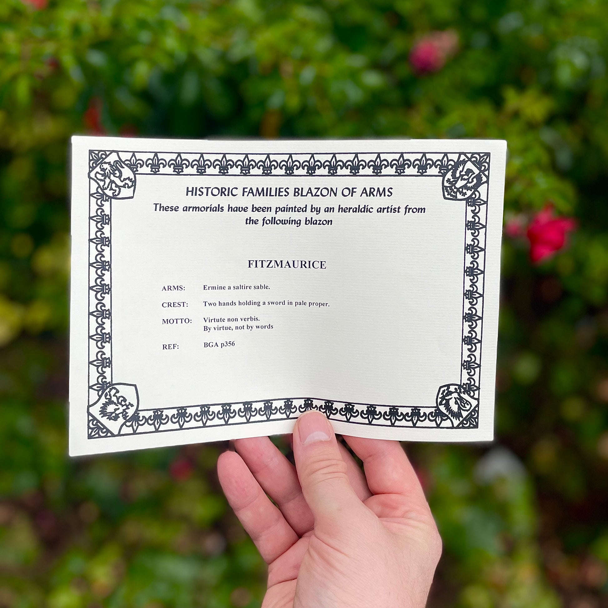 Please allow 4-5 weeks for completion. You will then be notified of shipping. If you'd like to receive your shield within 3 days of completion, then order expedited shipping at the checkout instead of standard shipping. Once you order, our dedicated team of heraldic artists get to work to create this from scratch. Our artists have been hand painting Coats of Arms for over 60 years.
