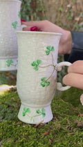 Presenting the Belleek Classic Irish Coffee Mug Pair – a delightful set of ceramic Irish mugs meticulously crafted with attention to detail. The design, inspired by wickerwork baskets, elegantly weaves simplicity into the pattern. Utilizing shamrock stems for handles and intricate details, this iconic collection epitomizes Belleek's enduring craftsmanship. These exquisite Irish coffee mugs, a timeless addition to any collection, serve as both cherished keepsakes and thoughtful Irish gifts for coffee aficionados.