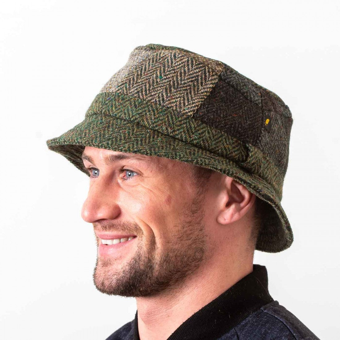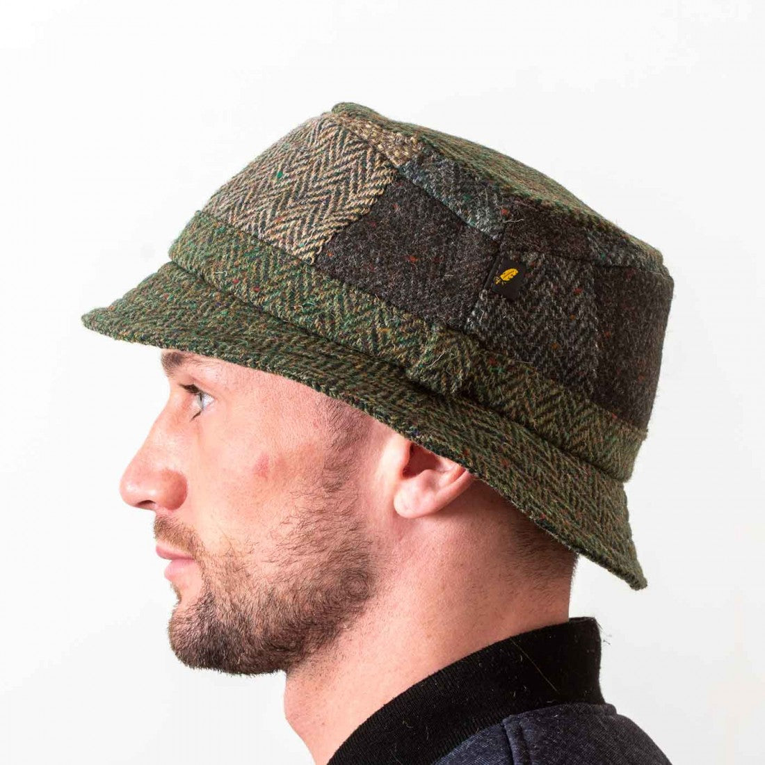 This elegant Irish walking hat has been handcrafted in Ireland in the traditional walking hat style using 100% wool. It comprises of patches of Irish tweed to make a green toned patch hat. Irish walking hats are the perfect accessory for dressing up for a casual walkabout. They are also known as bucket hats for some. This hat will suit almost any outfit.
