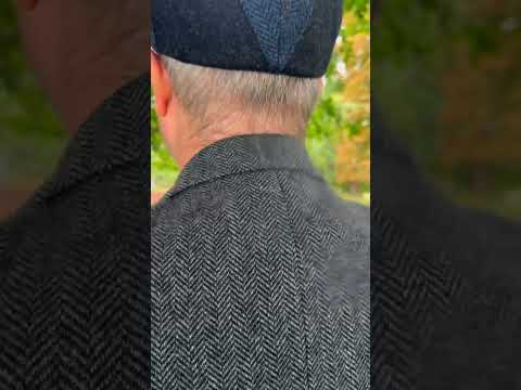 A beautiful handmade Tweed jacket from Emerald Isle that is both stylish and sophisticated. Displaying the traditional herringbone pattern in grey tones,.