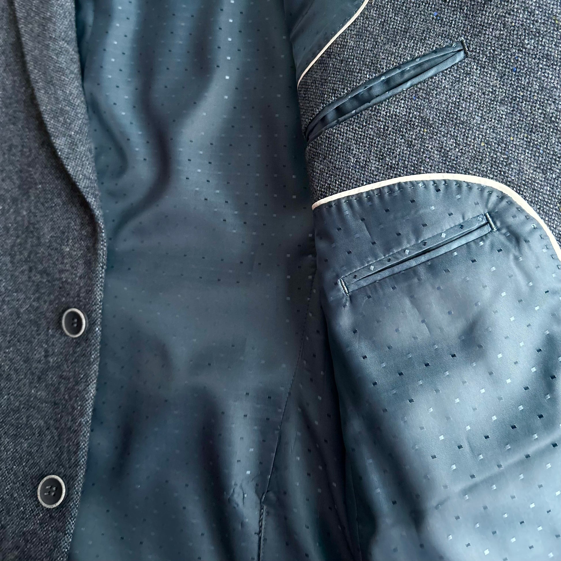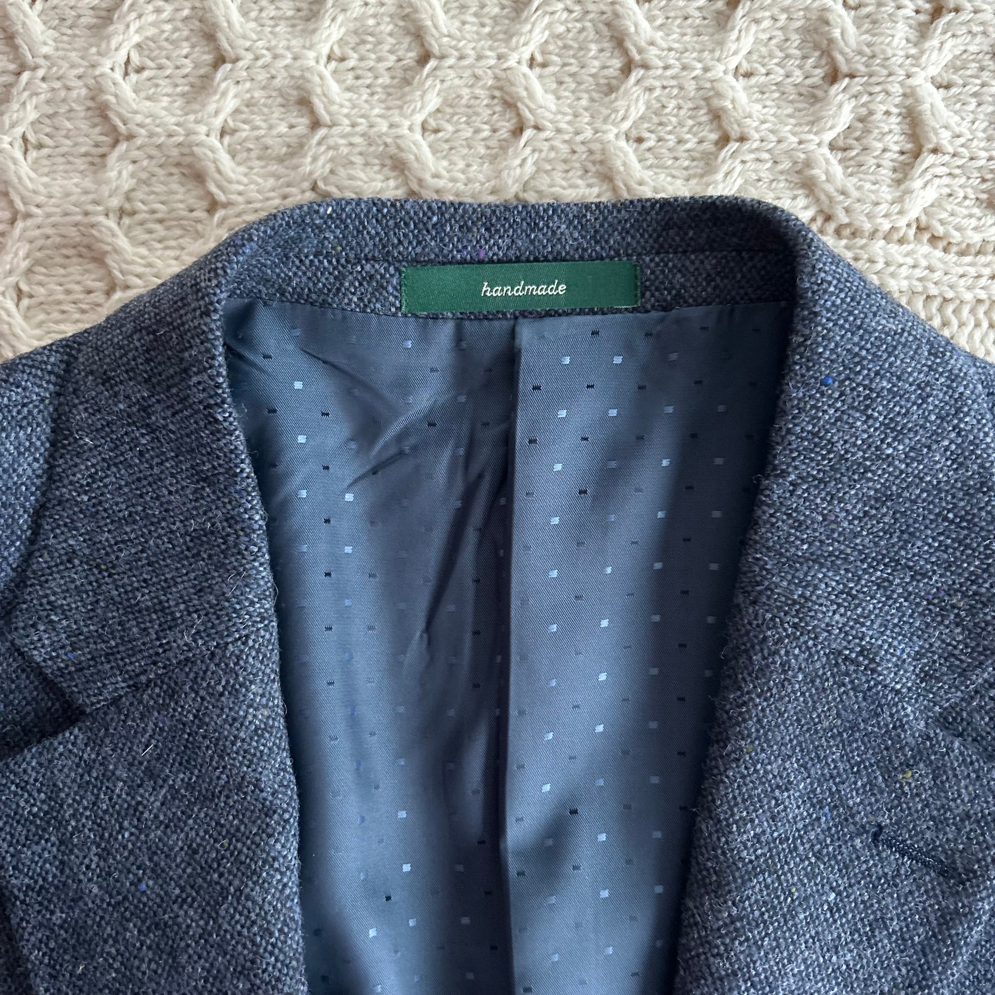 A beautiful handmade Tweed jacket in dark blue tone from Emerald Isle that is both stylish and sophisticated.