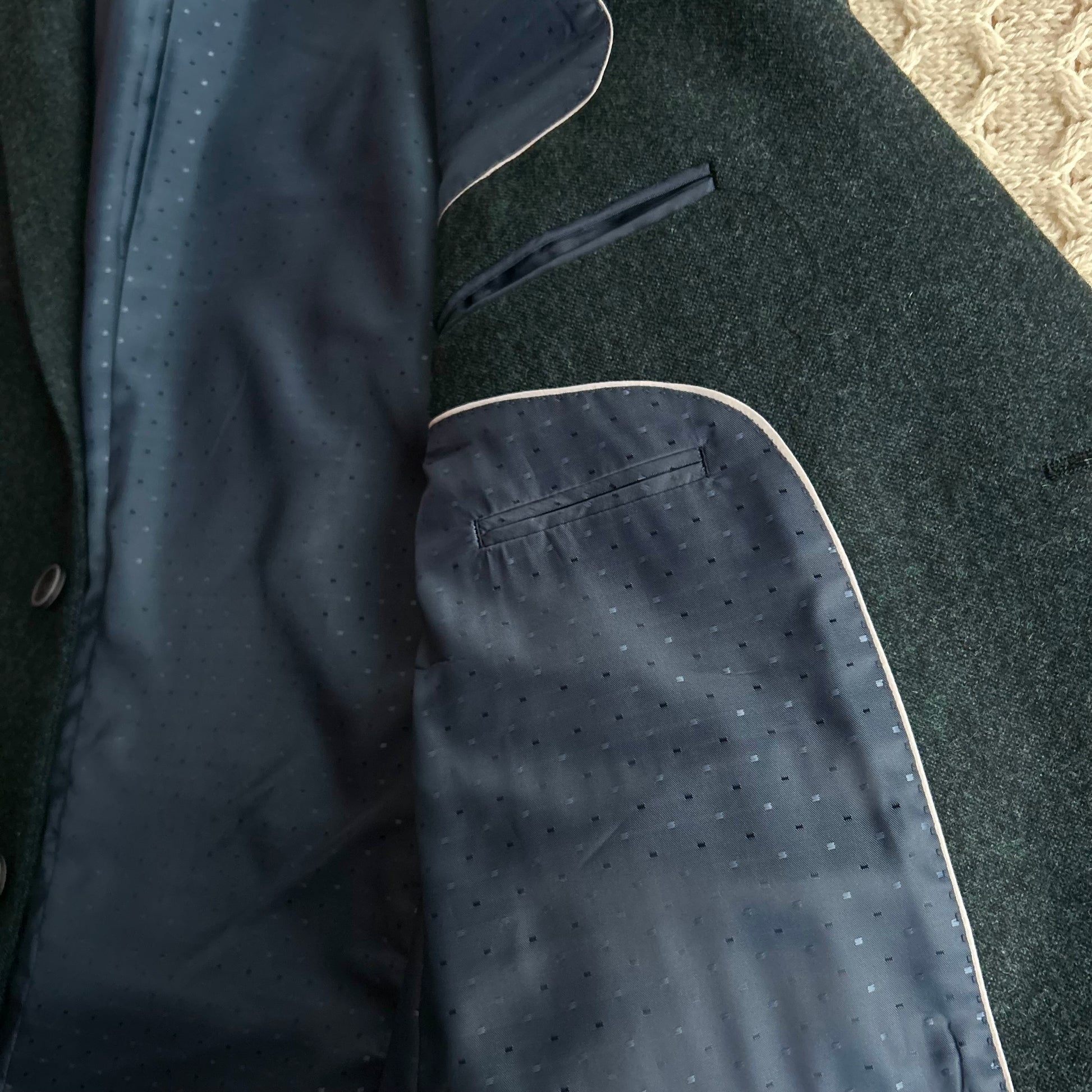 - Fully Lined with complimentary lining and contrasting piping