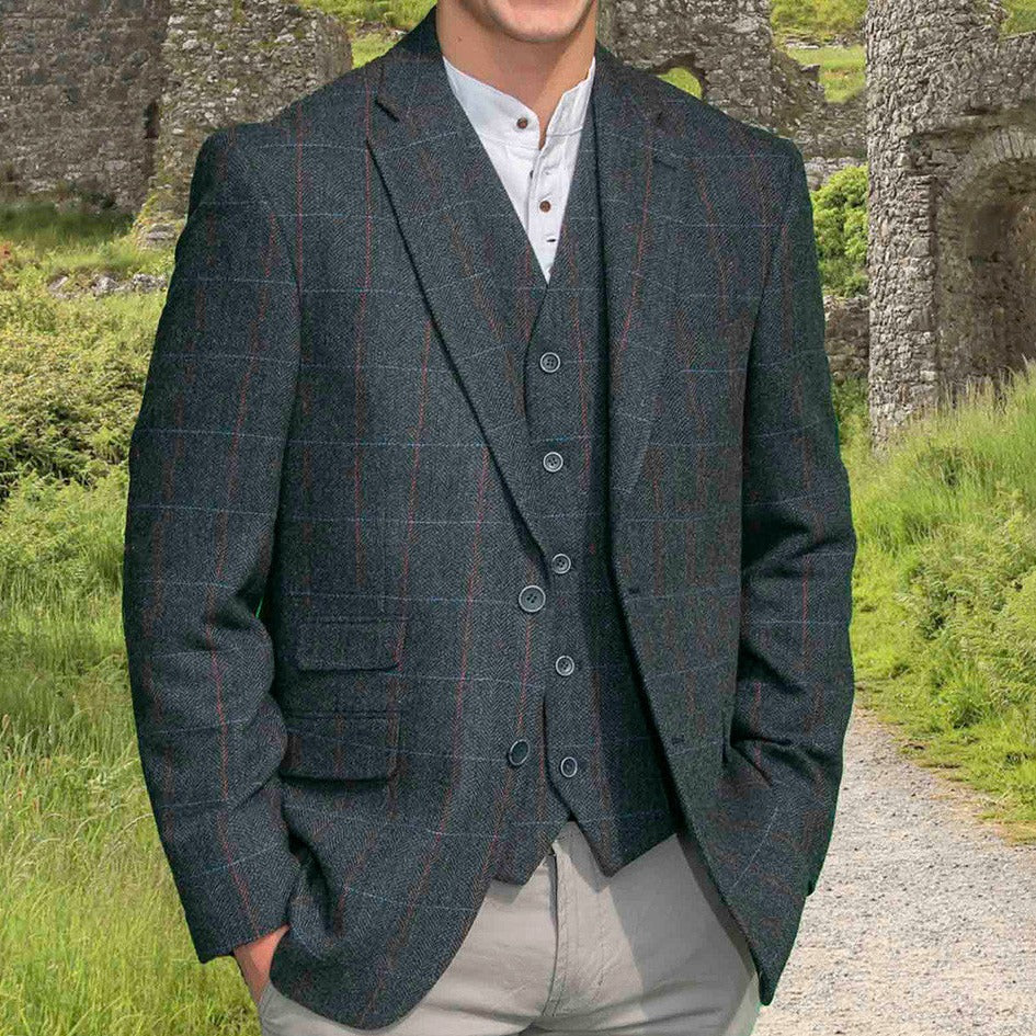 Irish Wool Tweed Sport Jacket - Dark Blue Overcheck