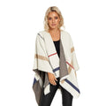 - Elegant Design: The sophisticated grey base is beautifully accented with bands of moss green and natural hues, adding depth and visual interest to the shawl.