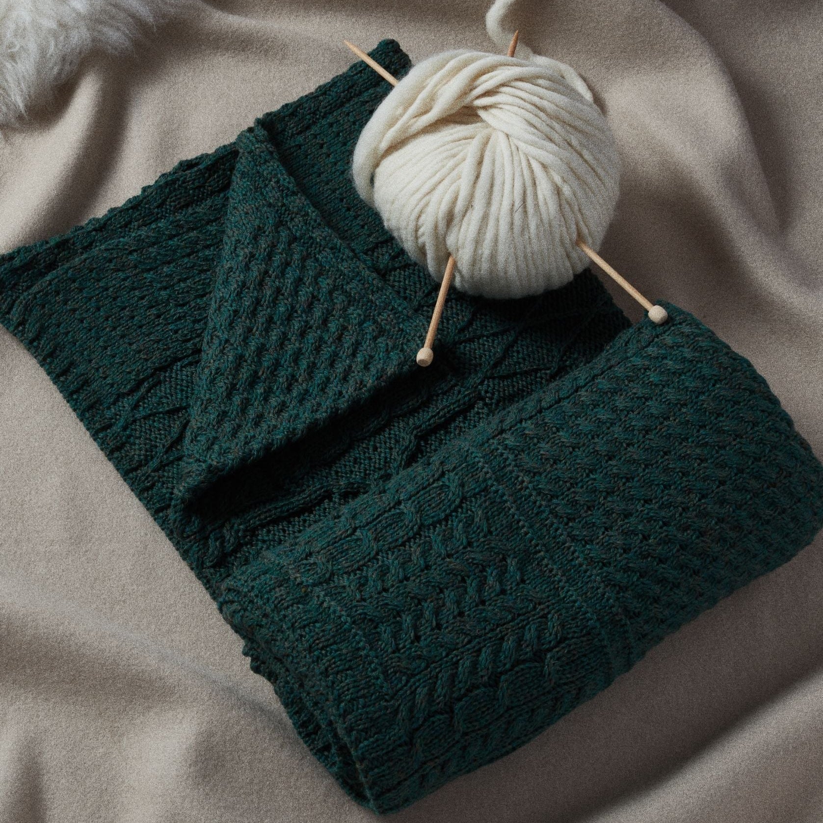 Keel Aran Patchwork Merino Blanket - Bottle Green