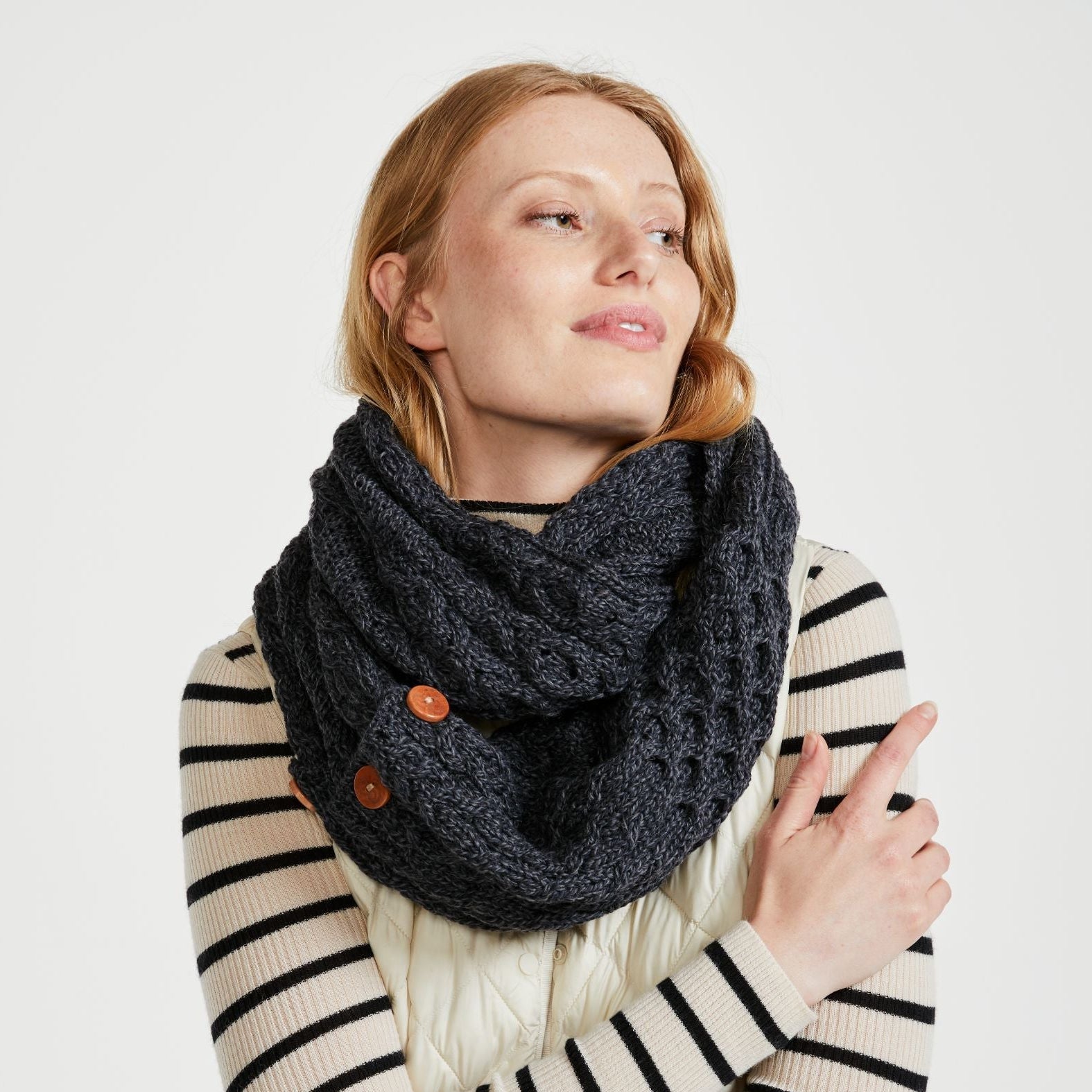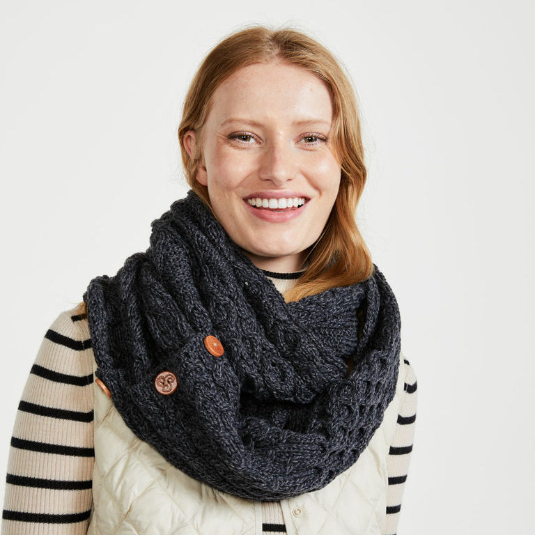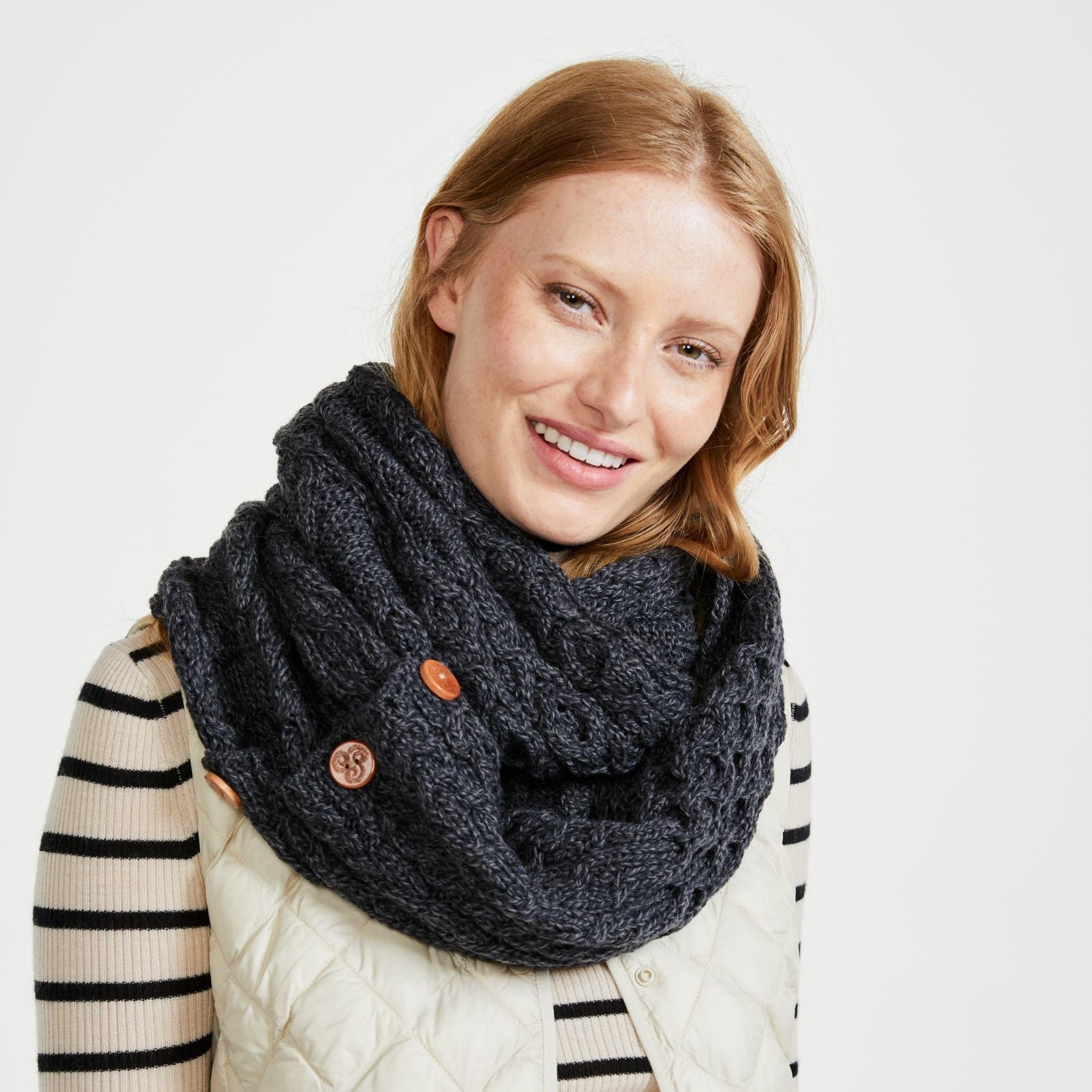 Kilmaine Aran Charcoal Snood Scarf with Buttons