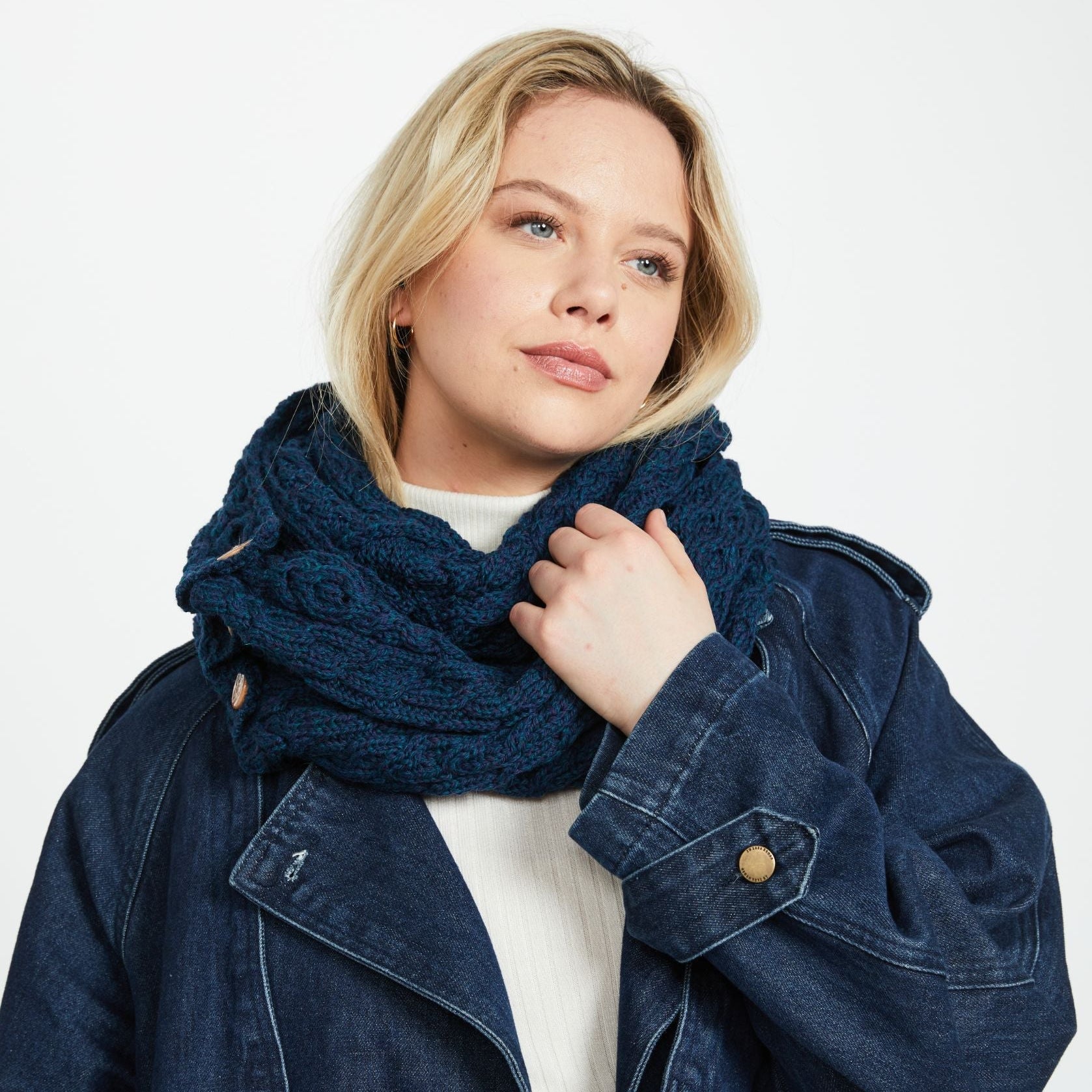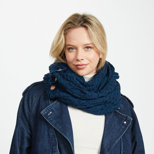 Kilmaine Aran Navy Snood Scarf with Buttons
