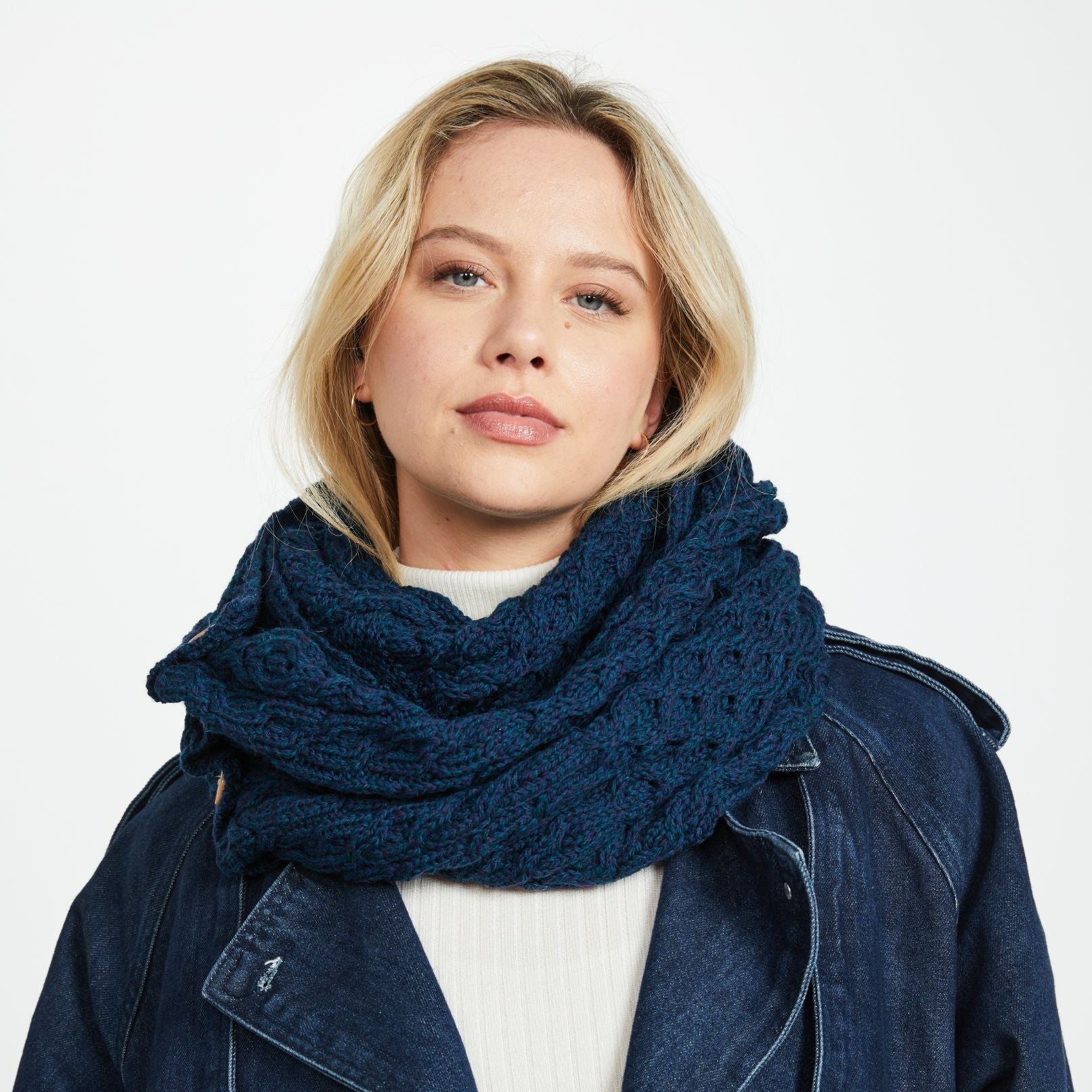 - Aran Stitching: Adorned with classic Aran cable stitching, this snood scarf pays homage to Ireland's rich knitting heritage.
