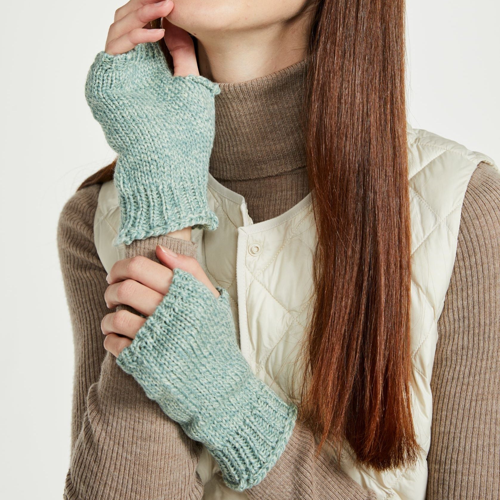 Kilmeena Aran Mint Fingerless Mittens
