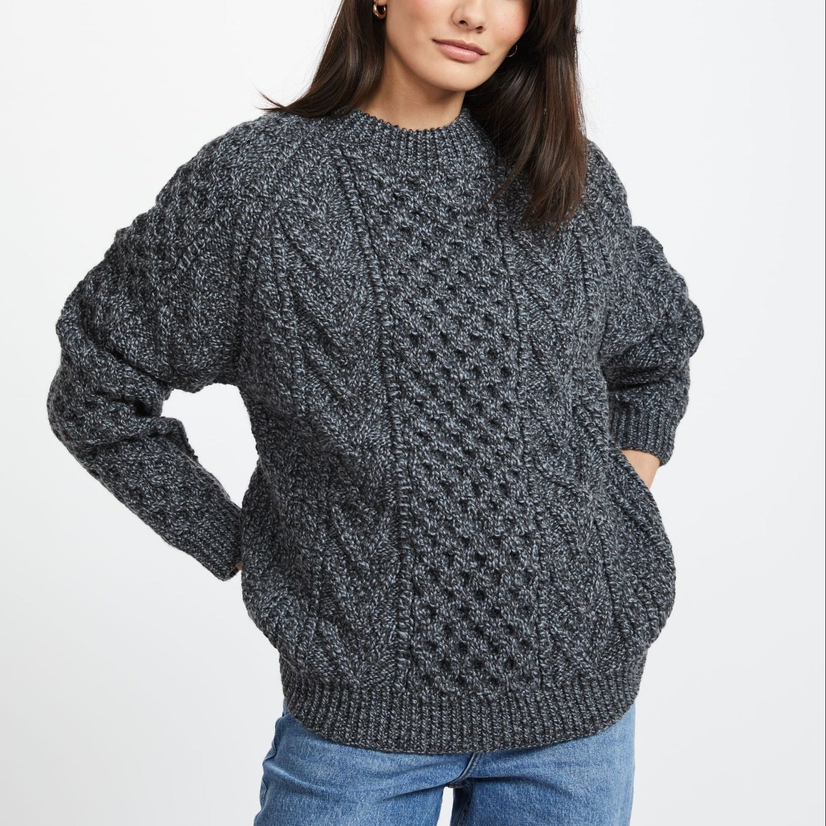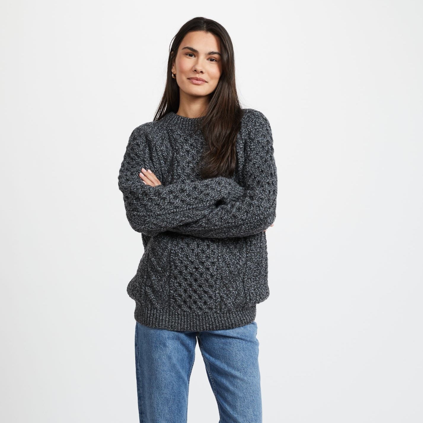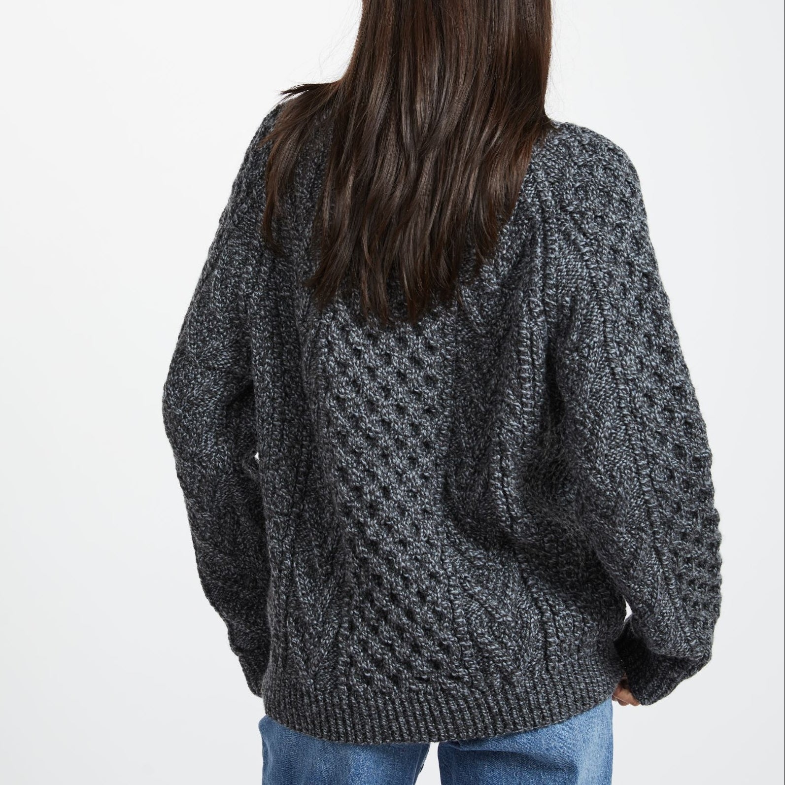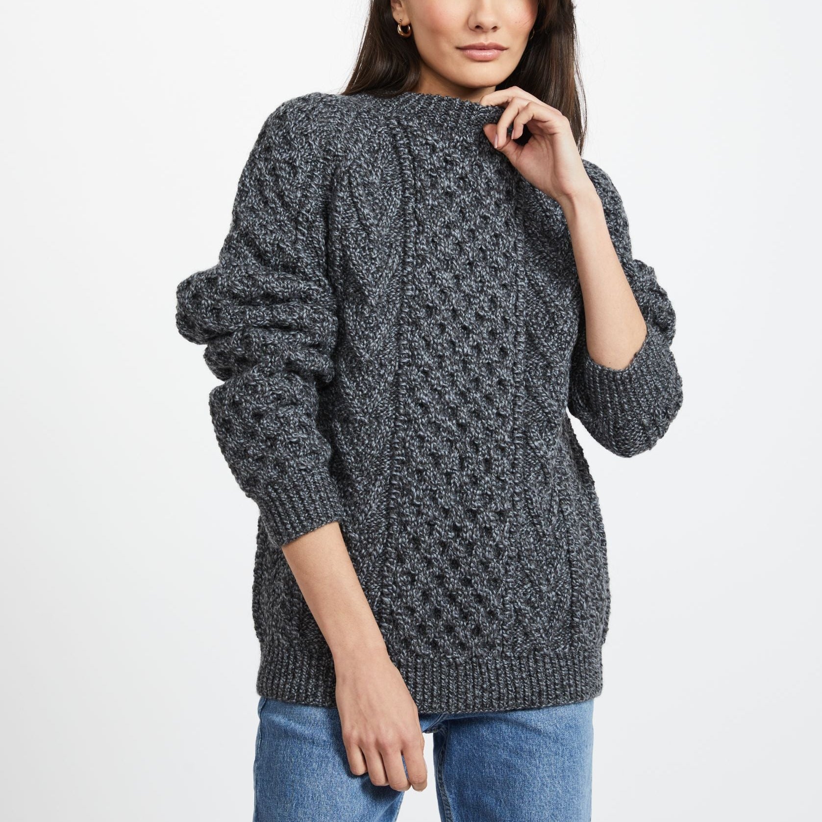 Kilronan Aran Ladies Charcoal Honeycomb Sweater