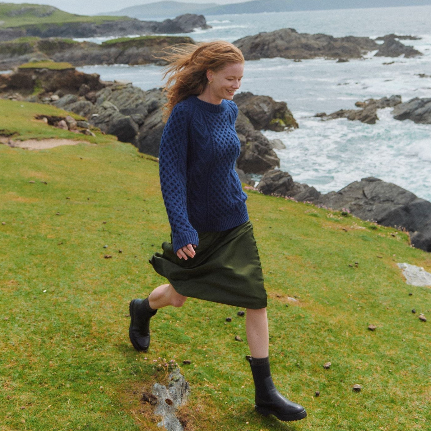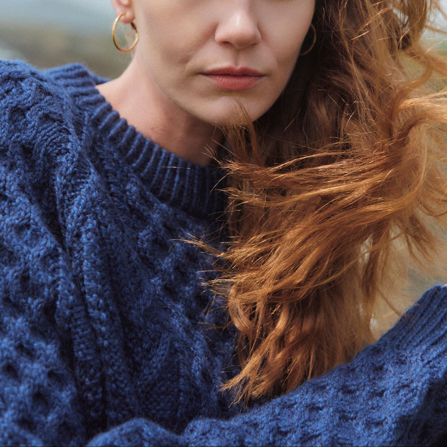 This exquisite sweater features a classic crew neck and ribbed cuffs and hem, ensuring a comfortable and flattering fit. The intricate honeycomb pattern not only adds texture and visual appeal but also represents the rich heritage of Irish craftsmanship. Whether you're heading out for a casual day in the countryside or looking for a cozy yet stylish layer for your city adventures, this versatile piece will keep you snug and stylish.