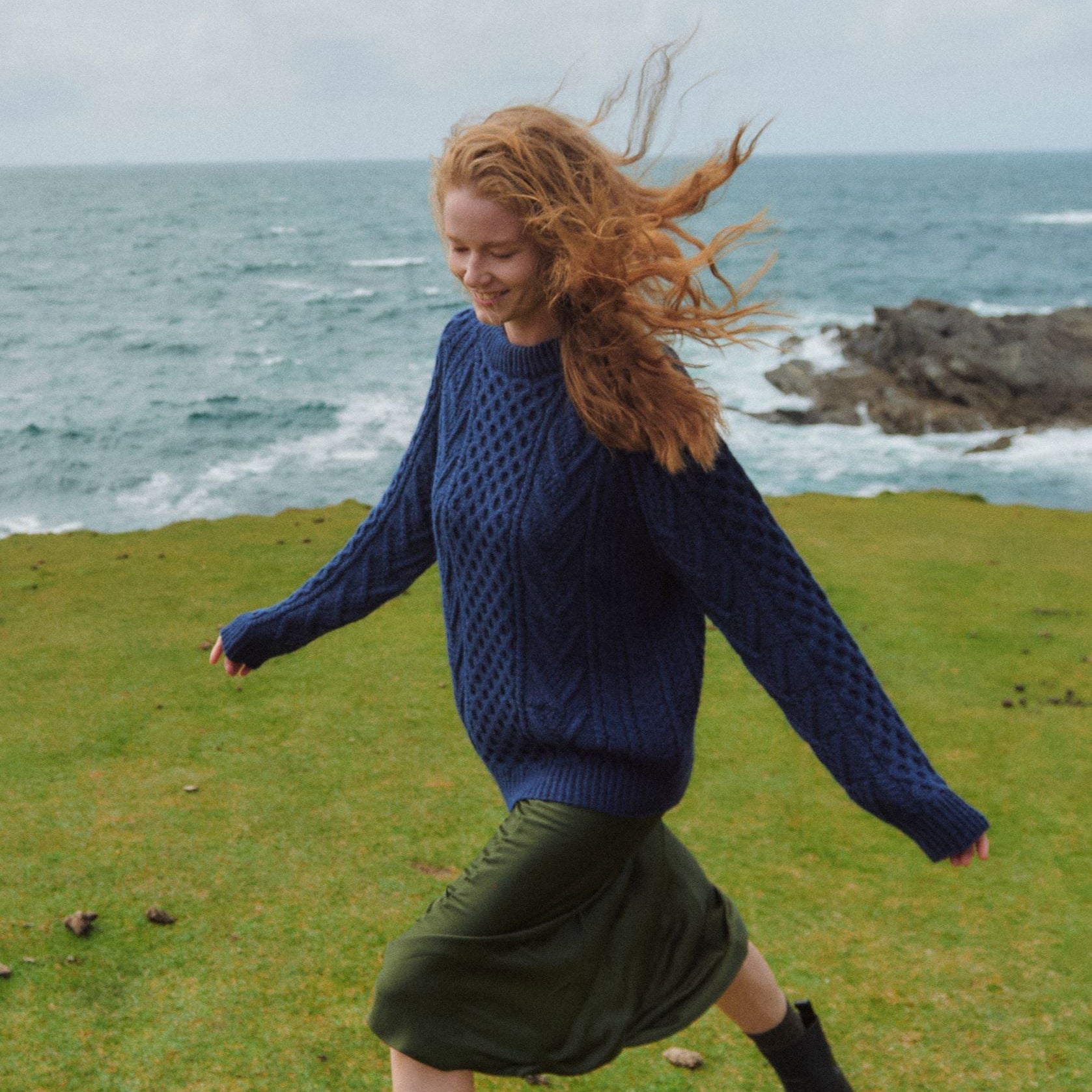 Kilronan Aran Ladies Navy Honeycomb Sweater