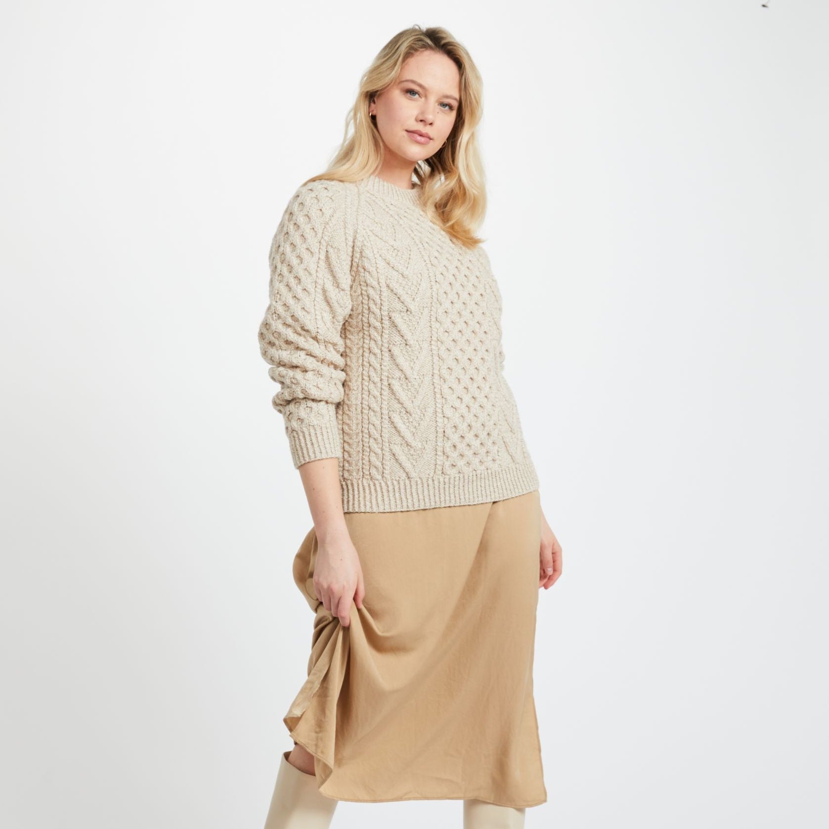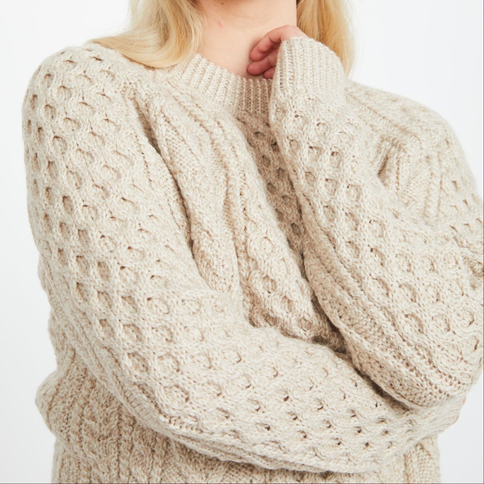 Kilronan Aran Ladies Oat Honeycomb Sweater