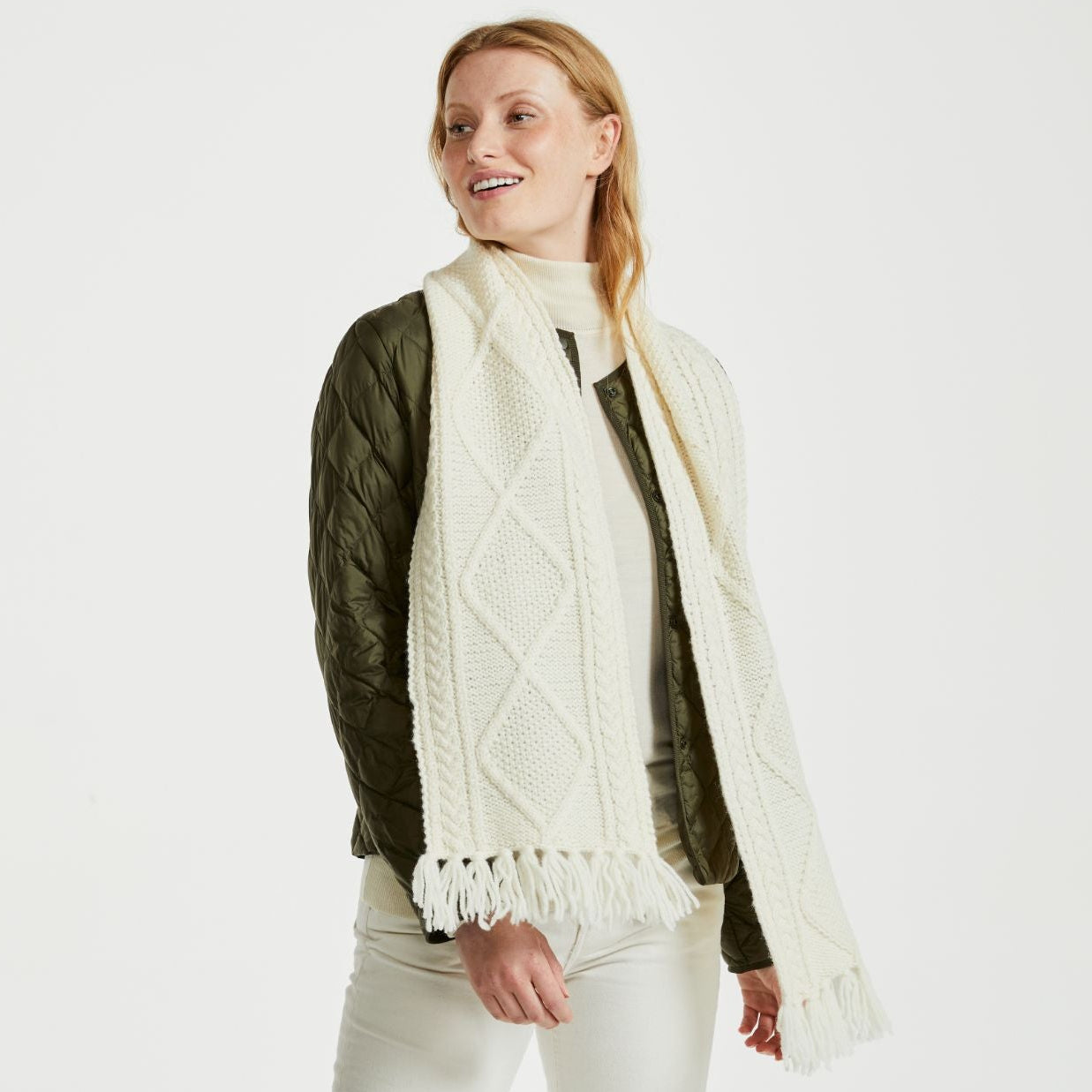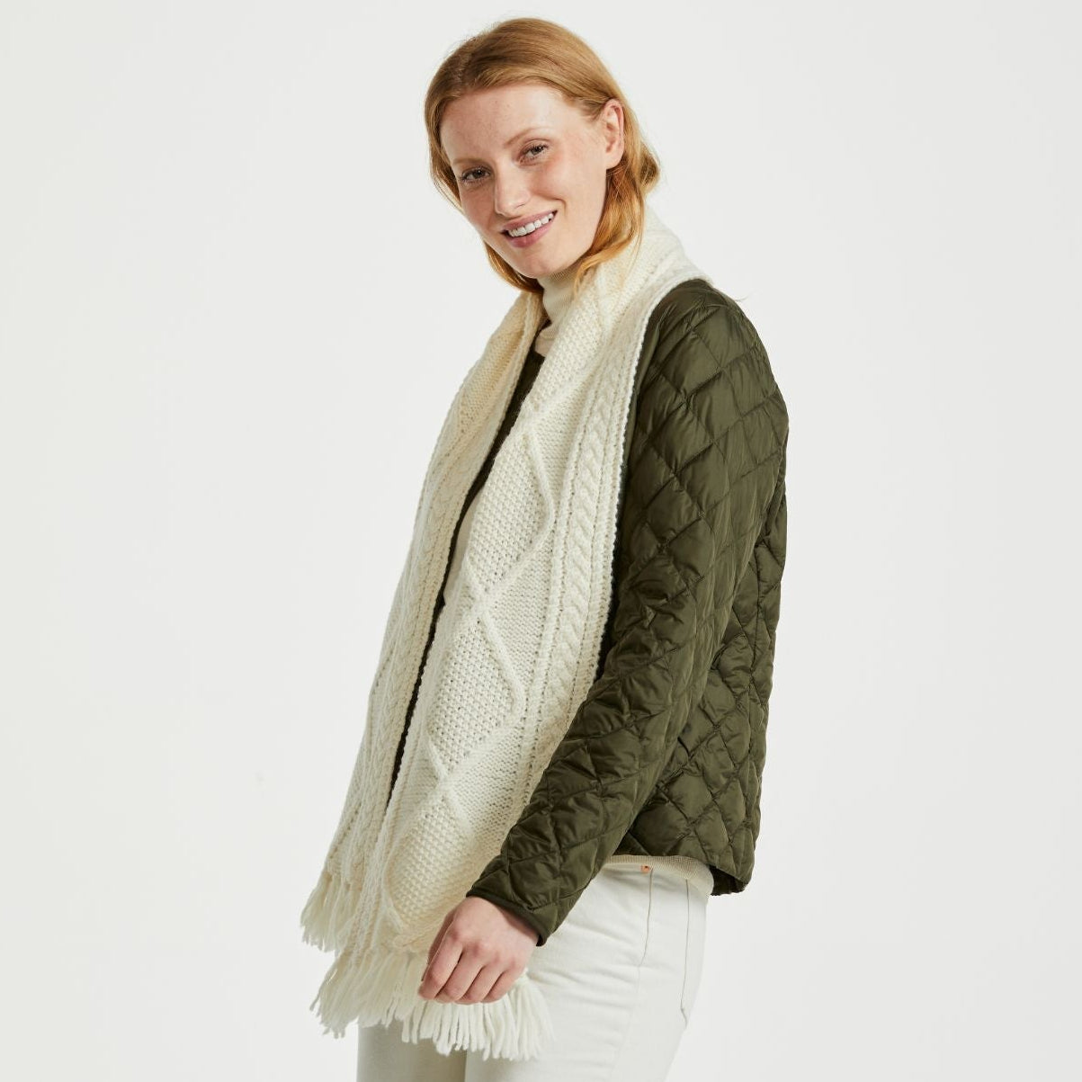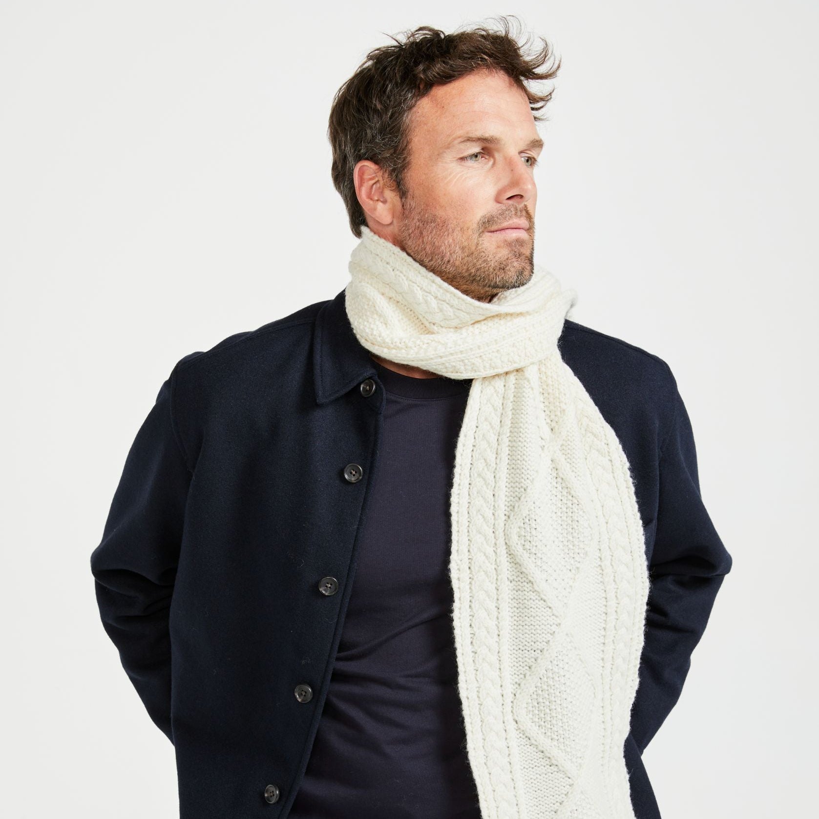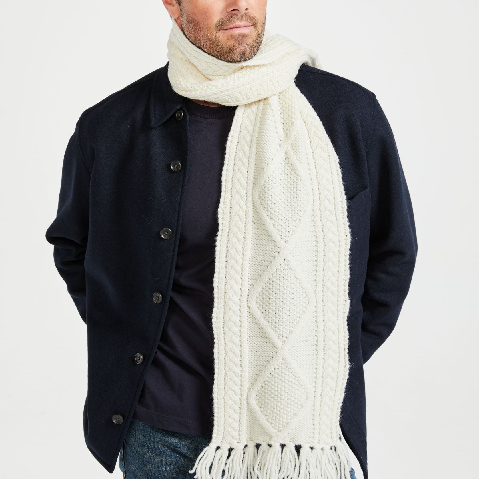 Elevate your winter wardrobe with the timeless elegance of the Kinard Aran Scarf. Whether you're strolling through the city streets or embracing the great outdoors, this scarf promises to keep you stylishly warm and impeccably chic.