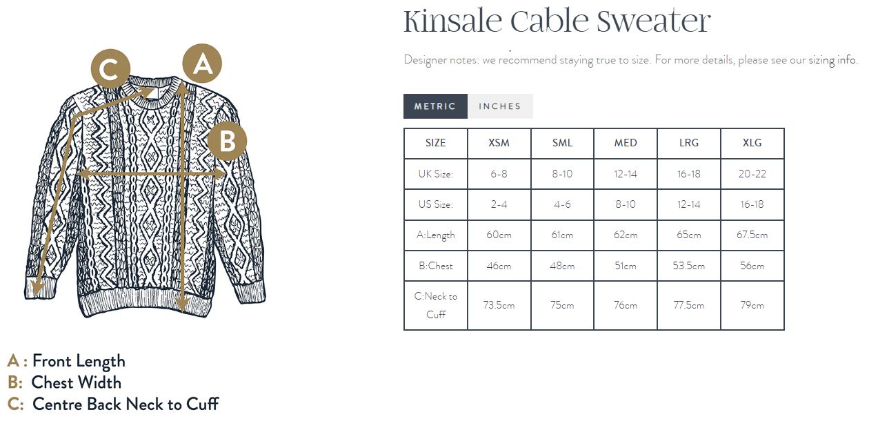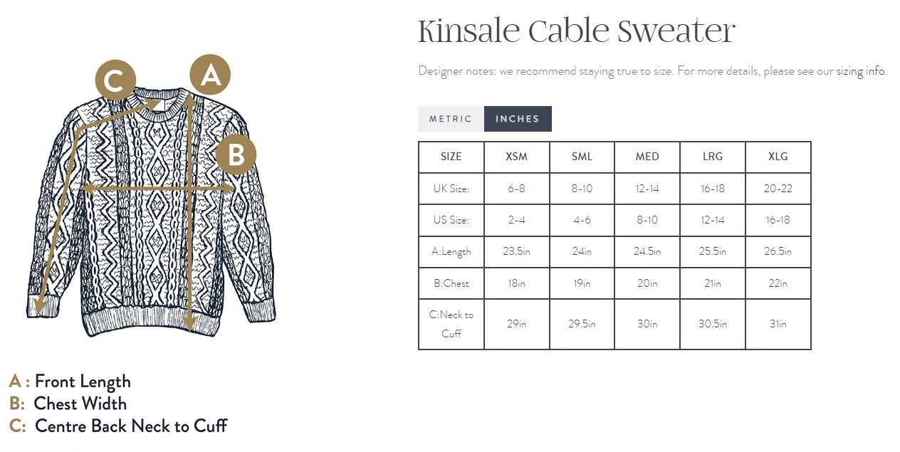 Balancing comfort and warmth with beauty and style, the Kinsale Cable Aran Sweater is the perfect companion throughout all seasons.