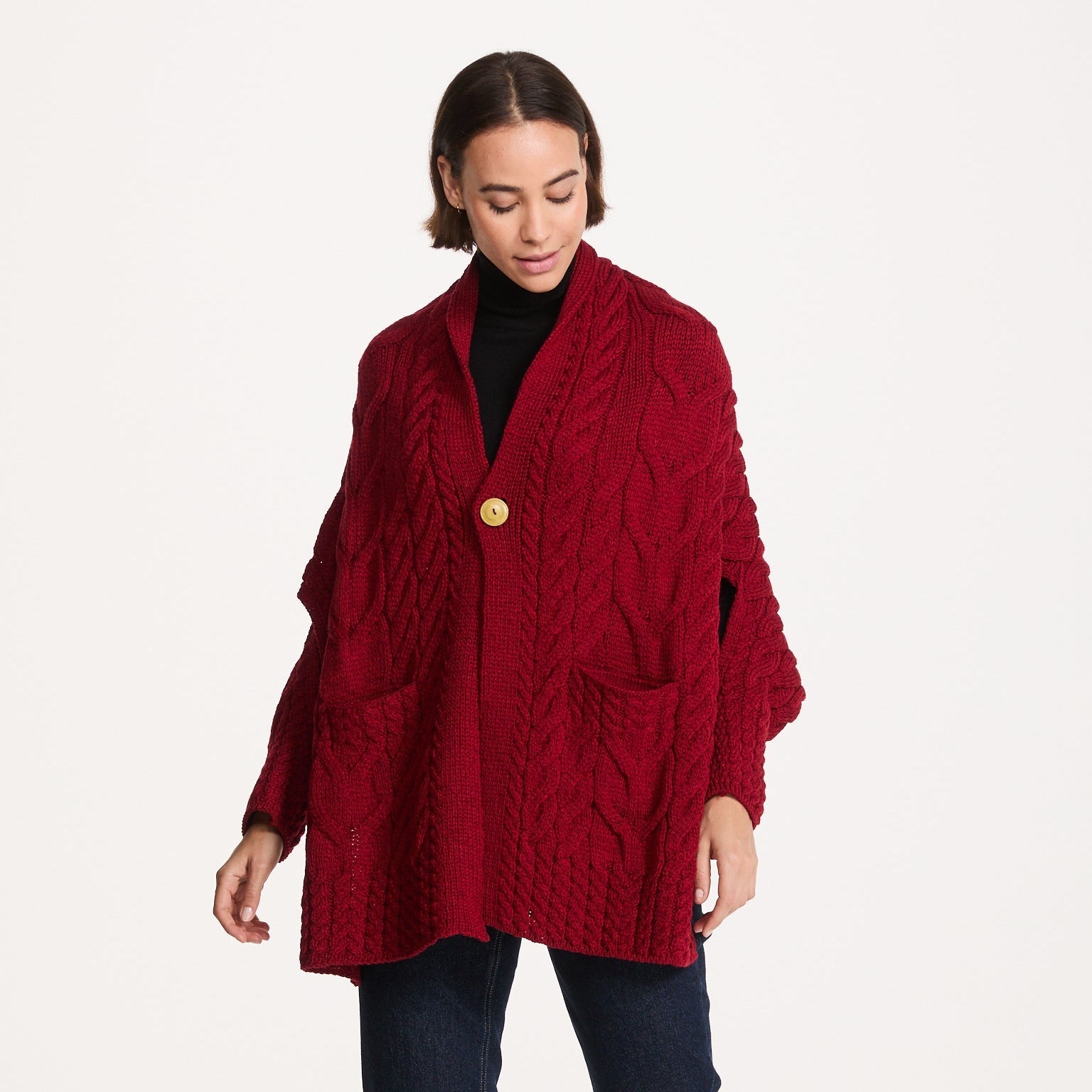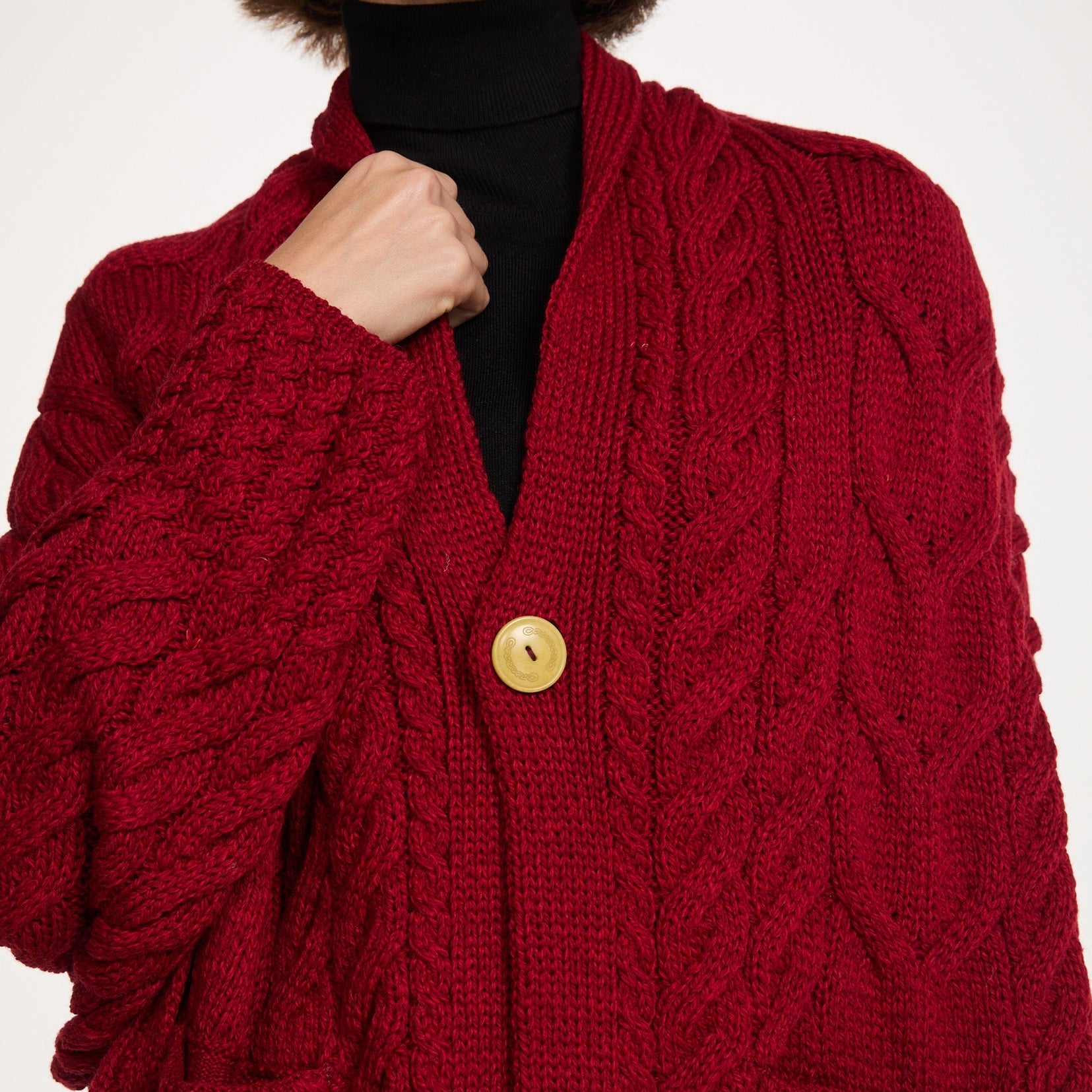 Knocknarea Ladies Wrap Merino Red Cardigan