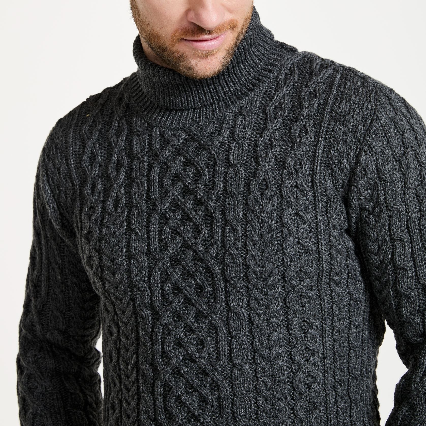 Kylemore Mens Aran Charcoal Polo Neck Sweater