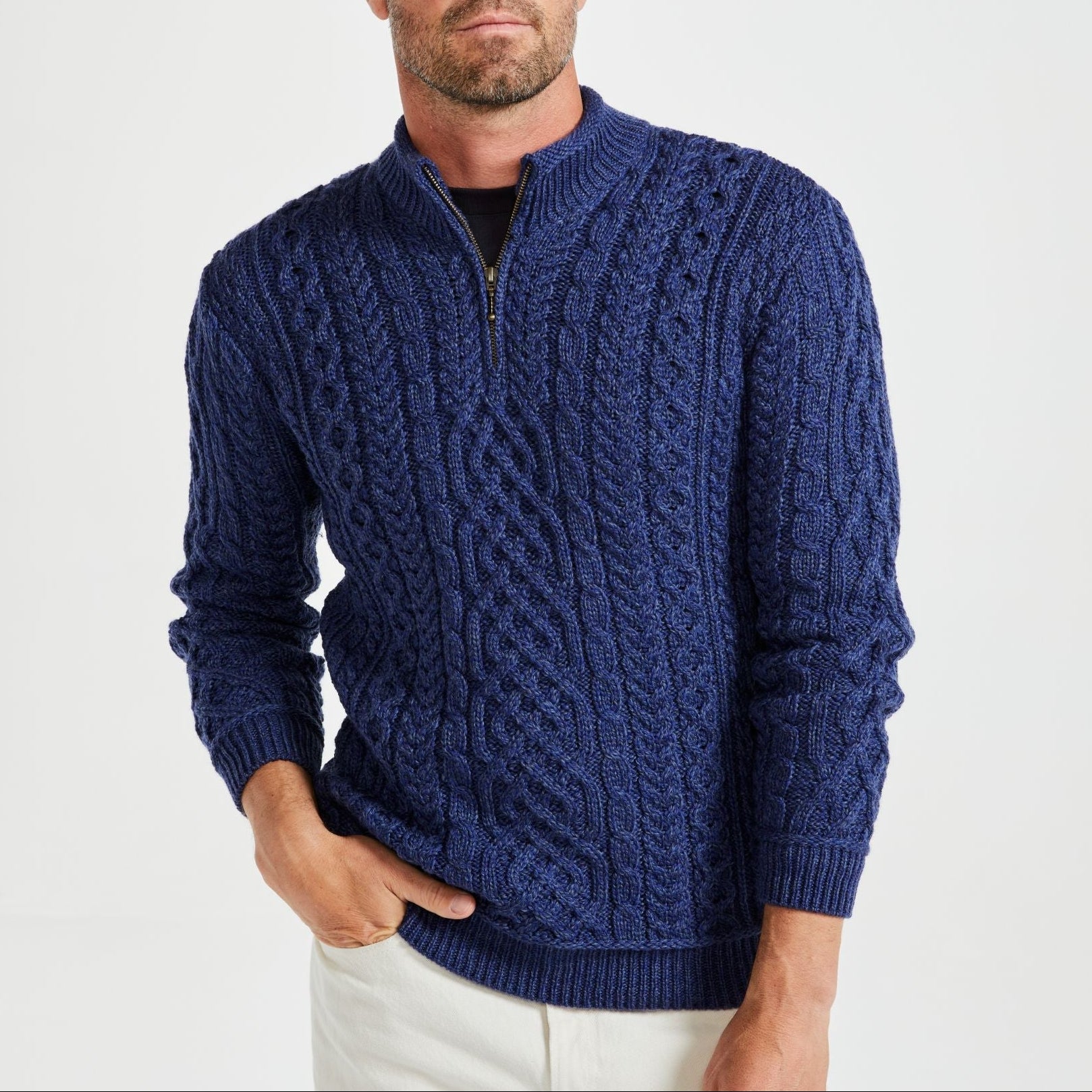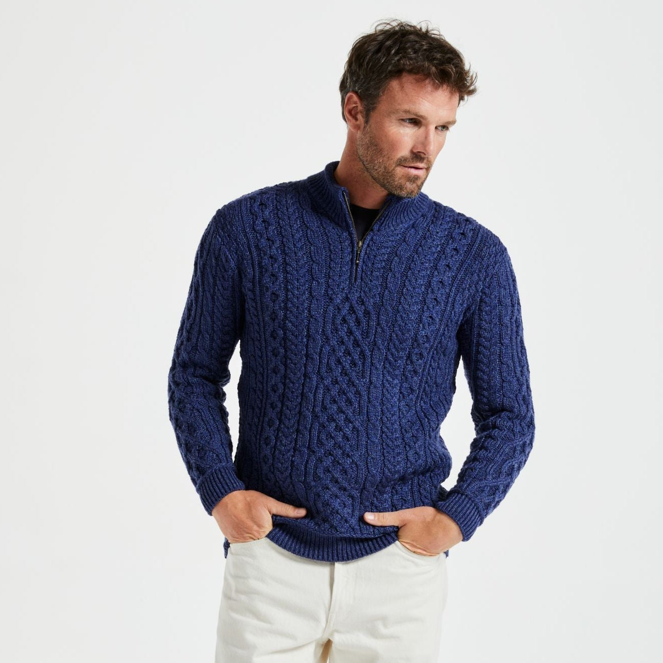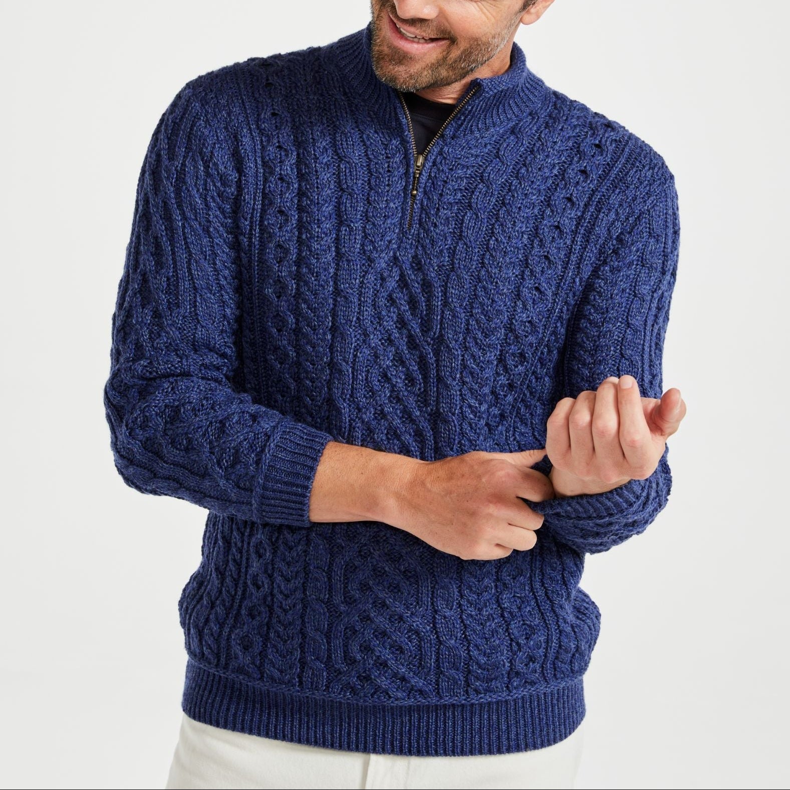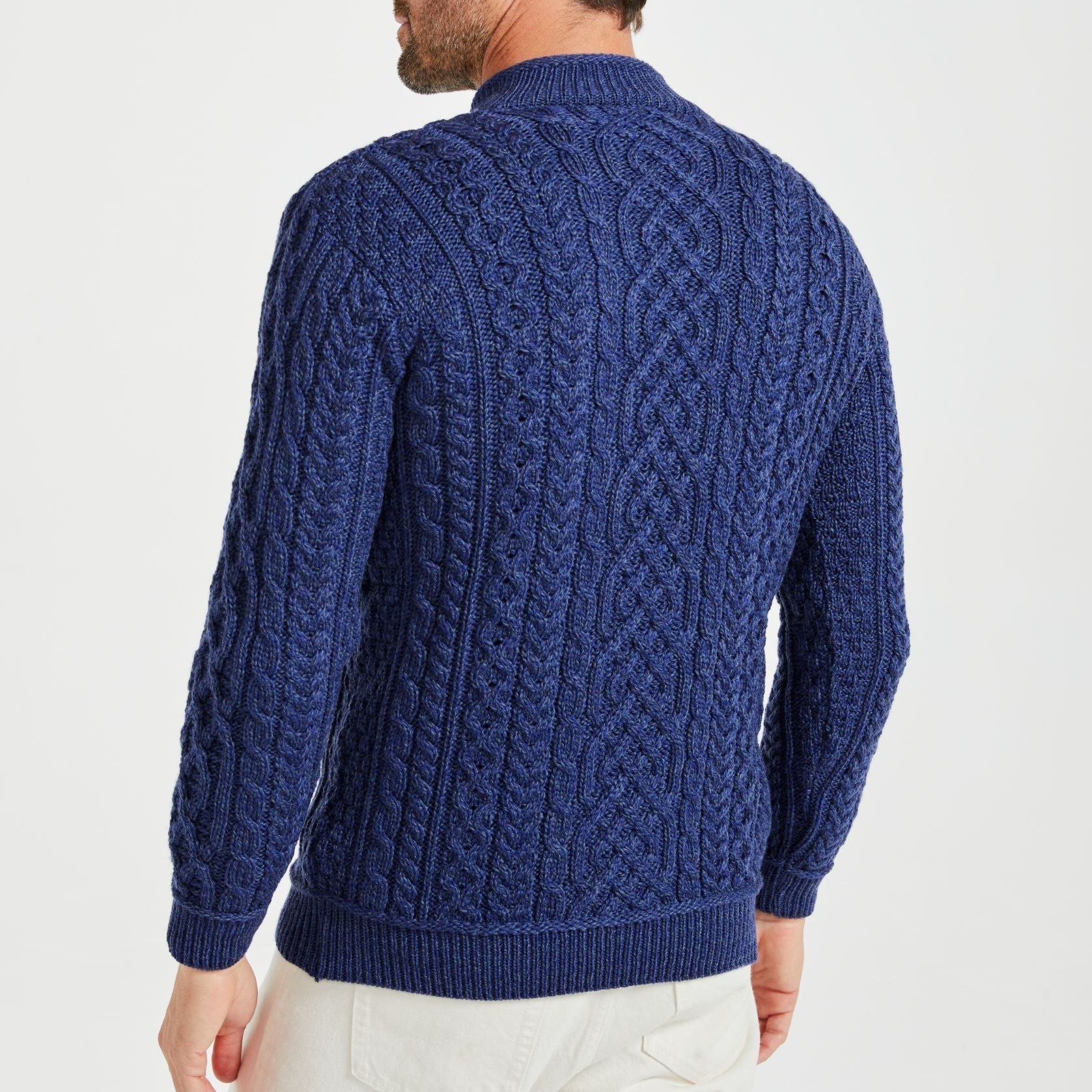 Lackaun Mens Navy Half Aran Troyer with Zip