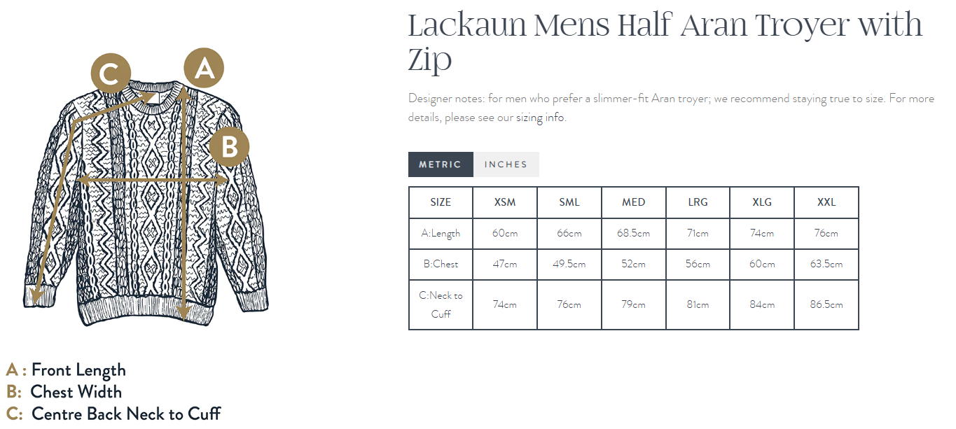 The Lackaun Mens Half Zip Aran Troyer is the versatile piece you’ve been searching for. A relaxed drop shoulder makes for a flattering fit and with an antique, brass coloured, metal quarter zip, you can stay warm or cool with ease. The Lackaun brings Aran heritage with it, celebrating traditional stitches such as the honeycomb and the cable.